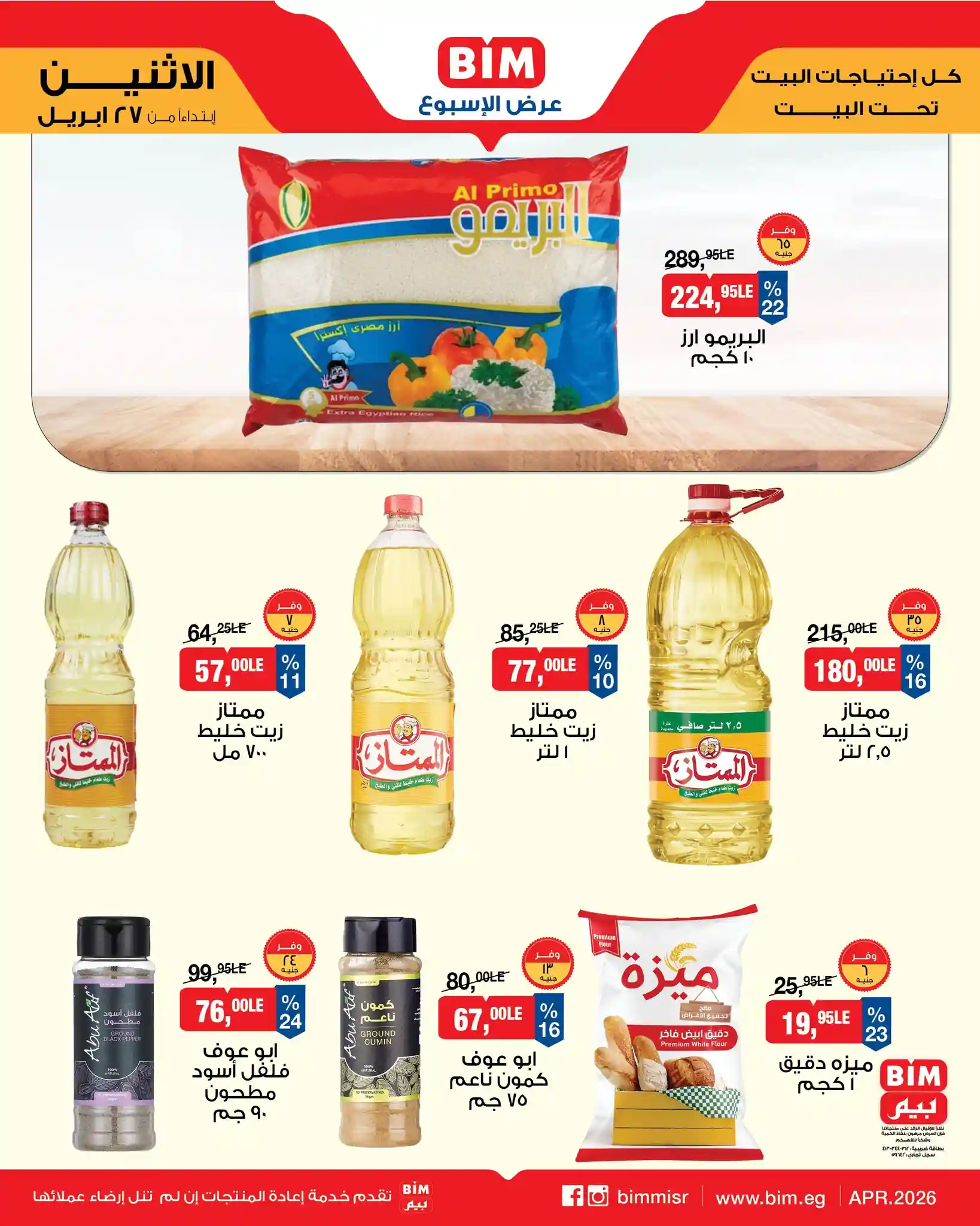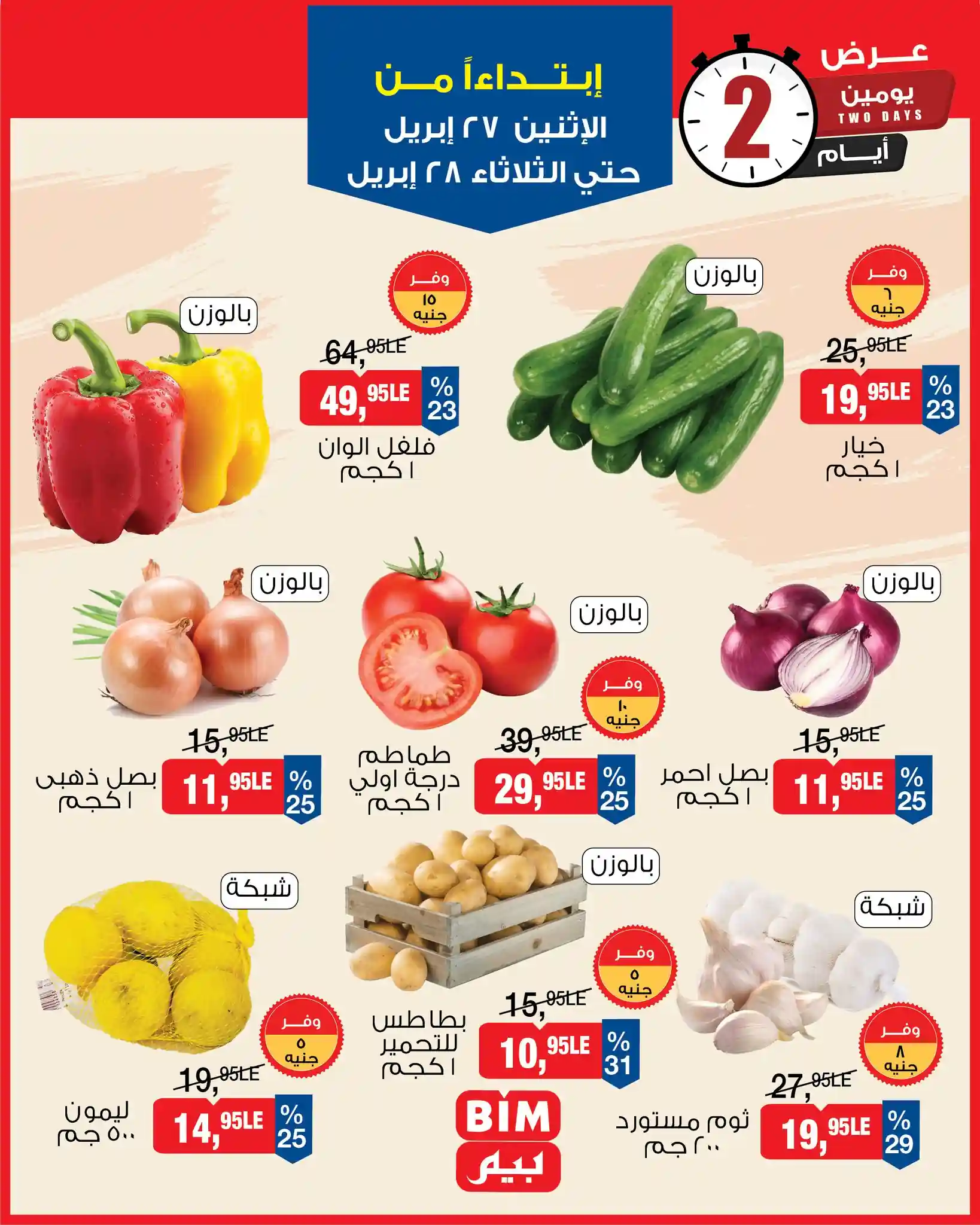 فريش أكتر… وتوفير يومين بس! ⏰من الاثنين 27 أبريل حتى الثلاثاء 28 أبريل أو نفاذ الكمية ???? خصومات بيم على الفاكهة والخضار ???? في جميع فروع بيم