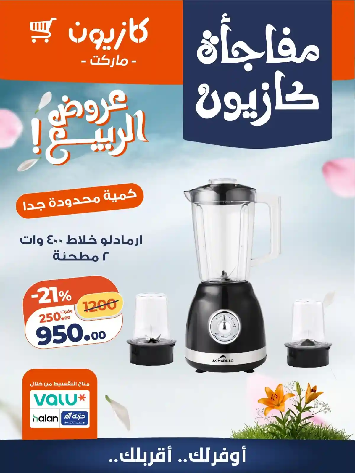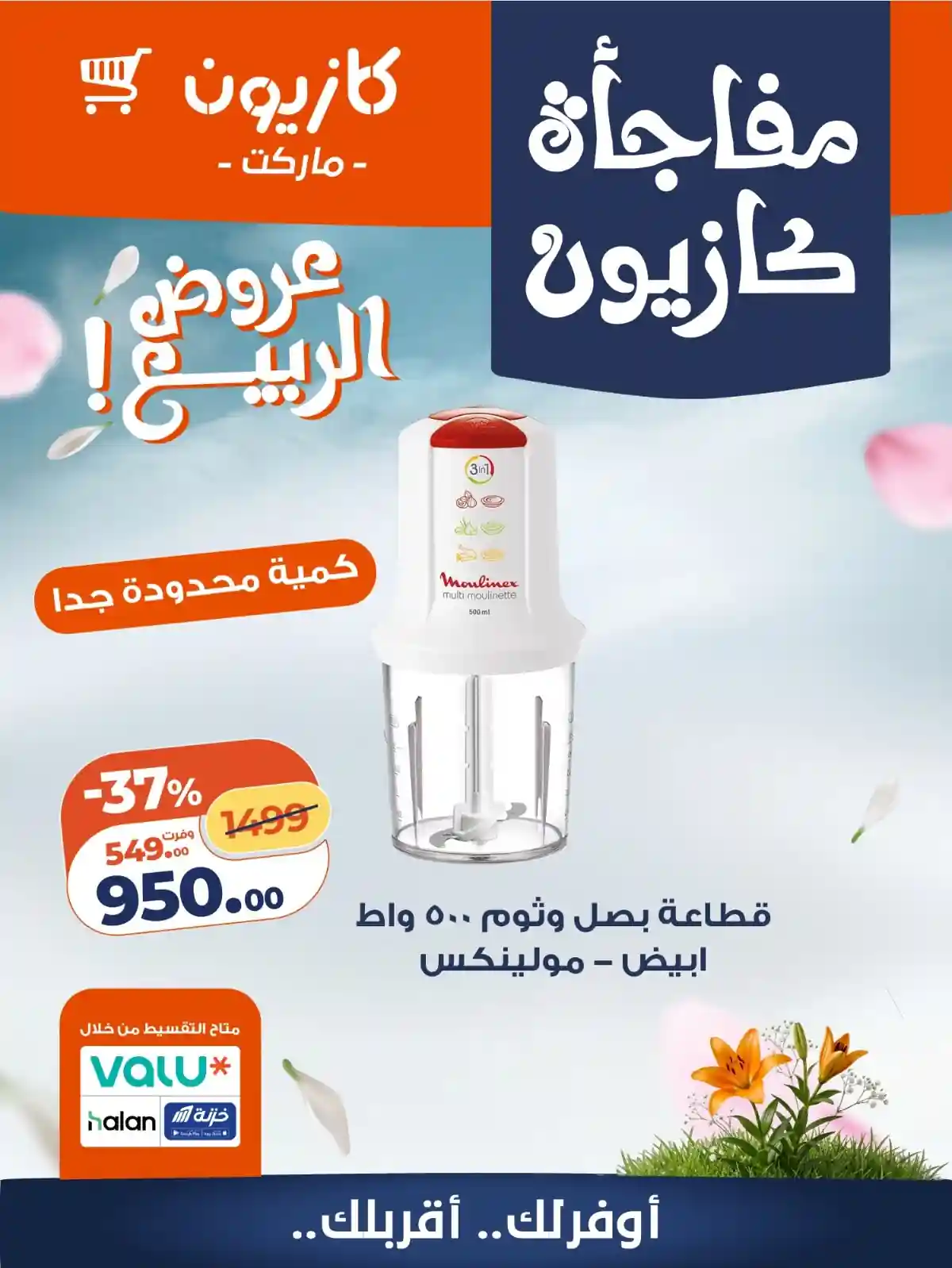 كملي احتياجات بيتك ومطبخك من عروض كازيون اليوم بأوفر سعر! (الكمية محدودة جداً) تطبق الشروط والأحكام: -العرض متاح فقط للعملاء المشتركين في برنامج الولاء كازيونى. – العرض ساري حتى يوم الخميس 30 أبريل وحتى نفاذ الكمية (الكمية محدودة). -متاح للعميل منتج واحد فقط. -الحجز والاستلام من نفس فرع كازيون خلال 5 إلى 8 أيام عمل باستثناء الإجازات الرسمية. -الحجز متاح من خلال الفرع فقط و يتم الاستلام من خلال نفس الفرع.
