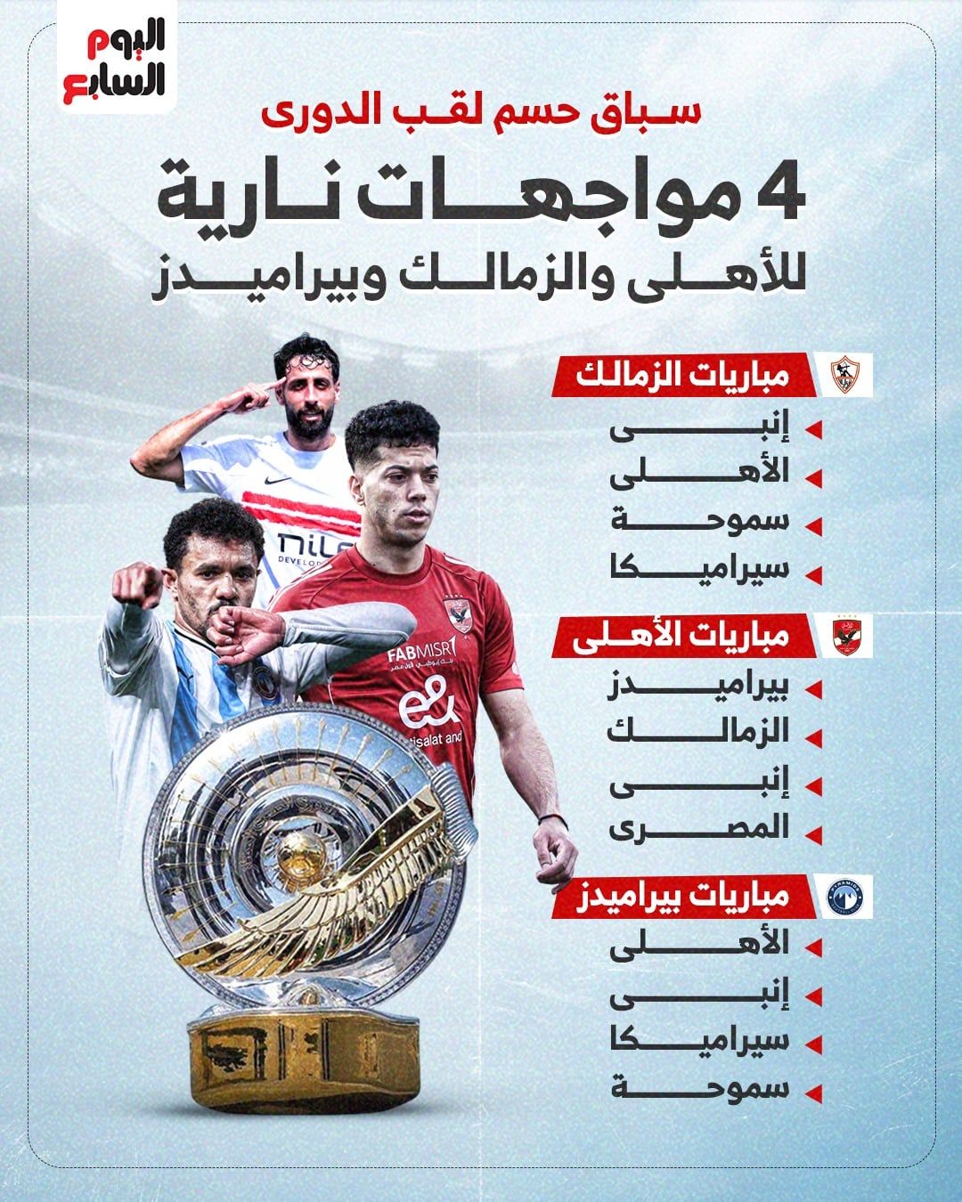 مواجهات الاهلى والزمالك وبيراميدز في الدوري
