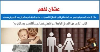 عشان نفهم.. لماذا الدعوات المستمرة بتخفيض سن الحضانة في قانون الأحوال الشخصية؟.. 5 عناصر تكشف أسباب النزول بسن الصغير في حضانته.. الأبرز "تقرير حق الأب في الولاية".. و"تلاشي فساد مبدأ التخيير بين الأبوين"
