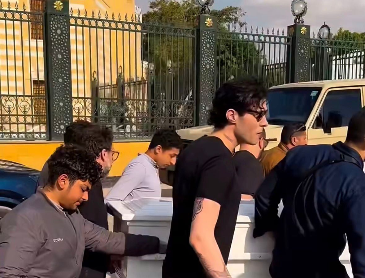 أمير عيد وتامر هاشم يحملان نعش والد ليلى فاروق بعد صلاة الجنازة