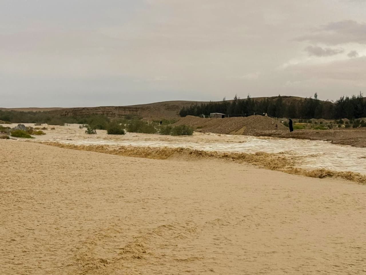 كما تسببت الأمطار بمنطقة الحمض بمدينة الحسنة ووادي الأزارق وقرية وادي العمرو في حدوث جريان سطحي للمياه، دون وقوع خسائر، ولم تصل المياه إلى منشآت الحماية.