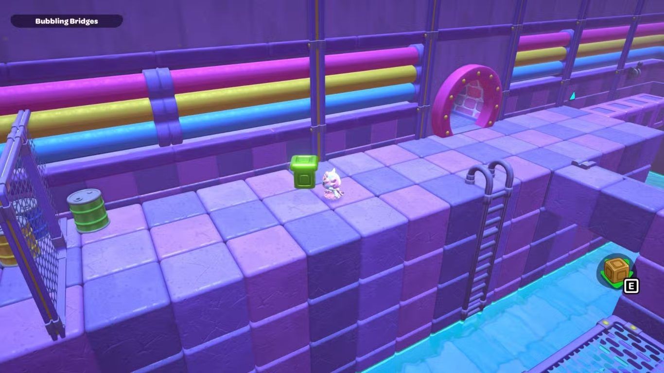 تقع غرفة لغز Bubbling Bridges عند الباب الموجود على الجهة اليسرى في الزاوية الشمالية الشرقية من مجاري City Town. ويتطلب حل هذا اللغز إنشاء سلسلة من الجسور باستخدام المكعبات الخضراء، ثم استخدام هذه الجسور لنقل مكعب أحمر حتى تتمكن من الطيران نحو الصندوق الموجود في أعلى الغرفة.