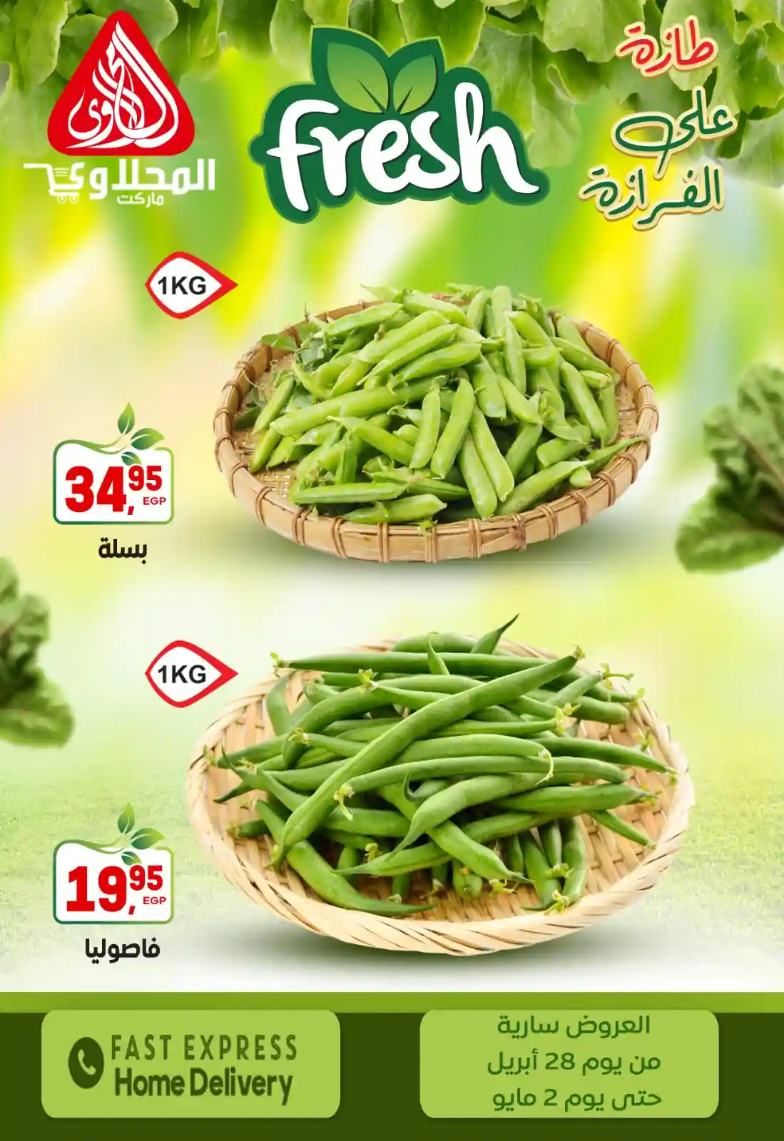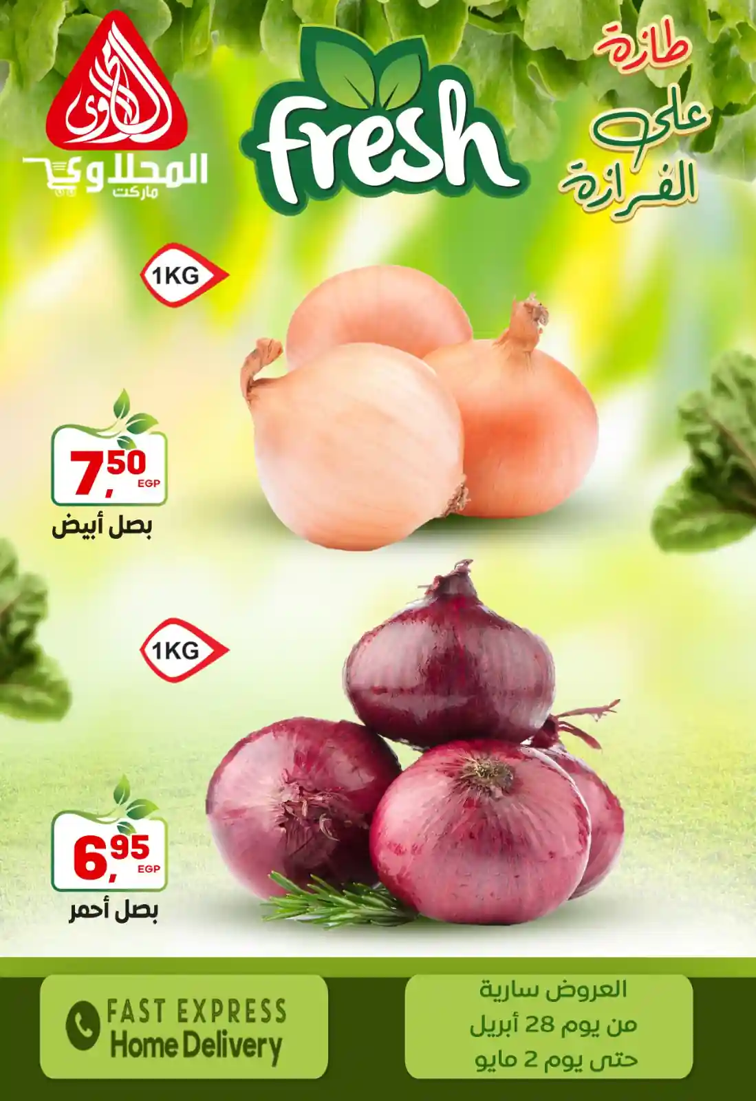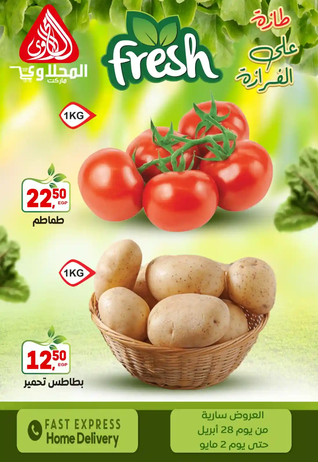طازة على الفرازة.. من “عروض المحلاوي ماركت” لبيتك! ???? مستعدين لأقوى عروض الفريش؟ الخضار والفاكهة عندنا النهاردة غير! جودة تانية خالص وأسعار تفتح النفس.. استمتعوا بأقوى التخفيضات في عروض “الأسبوع الطازج”. ???? العروض سارية من 28 أبريل وحتى 2 مايو 2026 ???? شرفونا بزيارة فروعنا: (مكرم عبيد – الطيران – مصطفى النحاس – المنطقة التاسعة – ألف مسكن – مصر الجديدة – التجمع الخامس “مول كور” – المهندسين – العبور “آخر سور نادي العبور”)