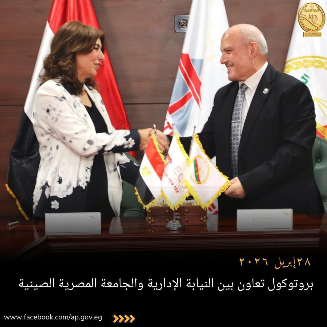 الثلاثاء، 28 أبريل 2026 02:08 مقام المستشار محمد الشناوي رئيس هيئة النيابة الإدارية، والدكتورة رشا الخولي رئيسة الجامعة المصرية الصينية، بتوقيع بروتوكول تعاون بين النيابة الإدارية والجامعة المصرية الصينية، وذلك بمقر رئاسة النيابة الإدارية اليوم.