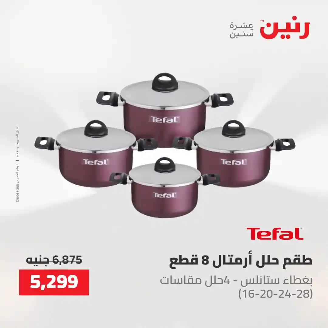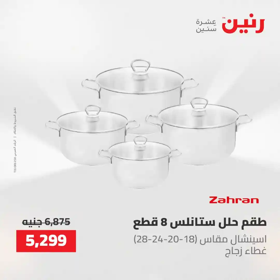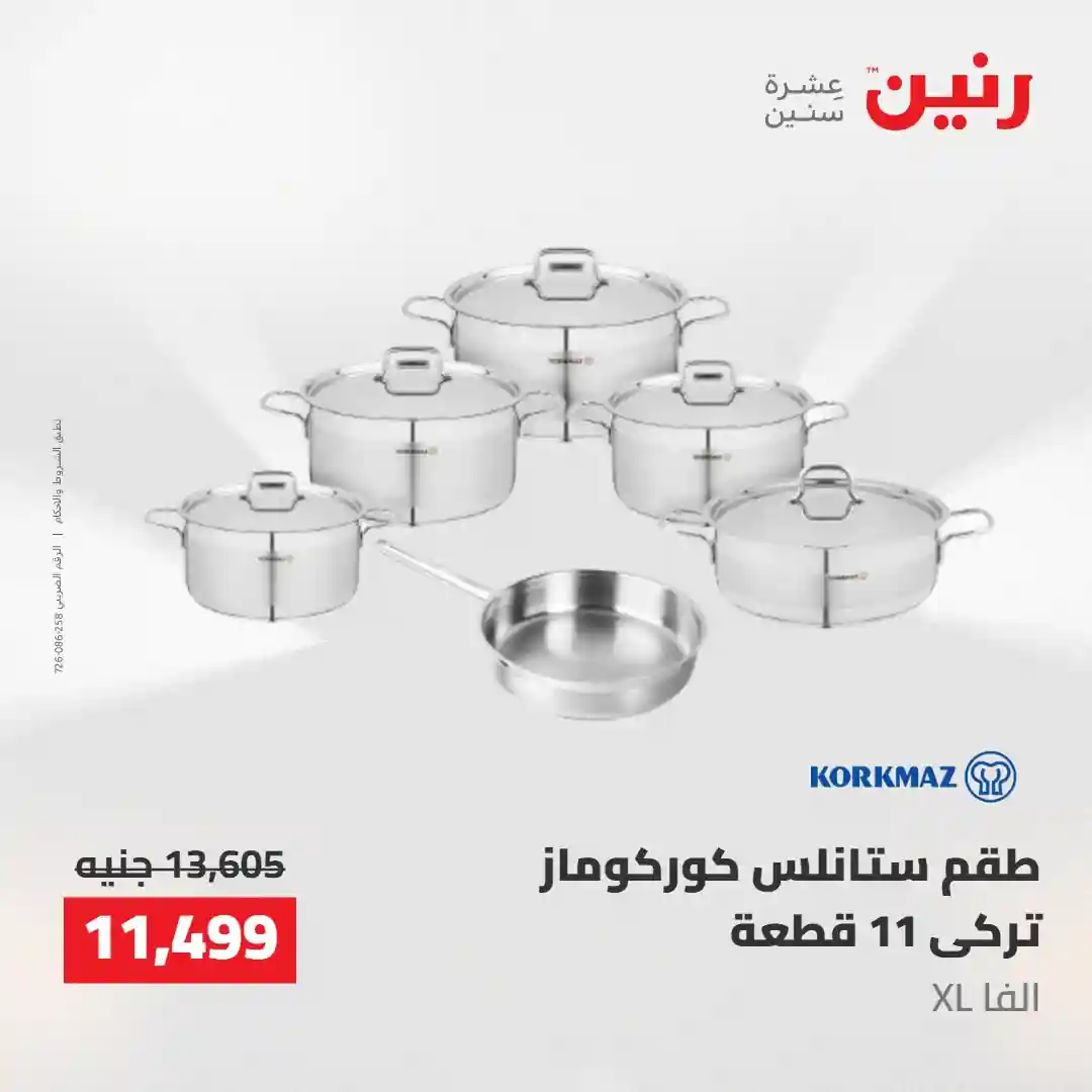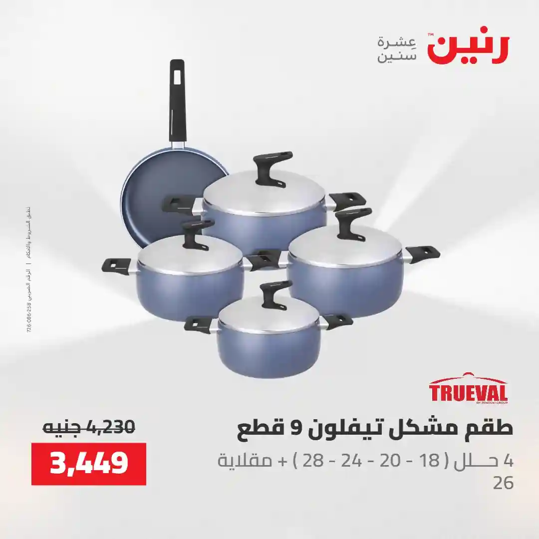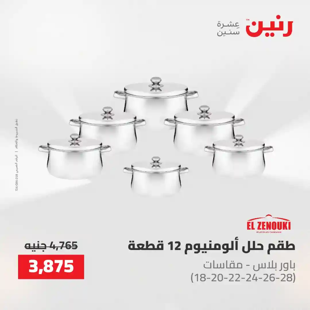 بتفكري تجددي مطبخك بطقم حلل جديد ؟ ???? هتلاقي في عروضنا أطقم حلل مثالية وأدوات مطبخ بجودة تعيش معاكي سنين ???? متوفرة دلوقتي بخصومات مميزة من يوم الخميس إلى السبت 30 ابريل حتى 2 مايو 2026 في جميع فروع رنين ???? قسّطي مشترياتك من رنين (0% مقدم – 0% فوائد – 0% مصاريف إدارية)