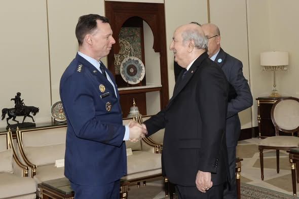 استقبل رئيس الجمهورية عبد المجيد تبون القائد الأعلى للقوات المسلحة وزير الدفاع الوطني نائب كاتب الدولة الأمريكي كريستوفر لاندو وقائد القيادة العسكرية الأمريكية في إفريقيا (أفريكوم)، الجنرال داغفين أندرسون، والوفد المرافق لهما.