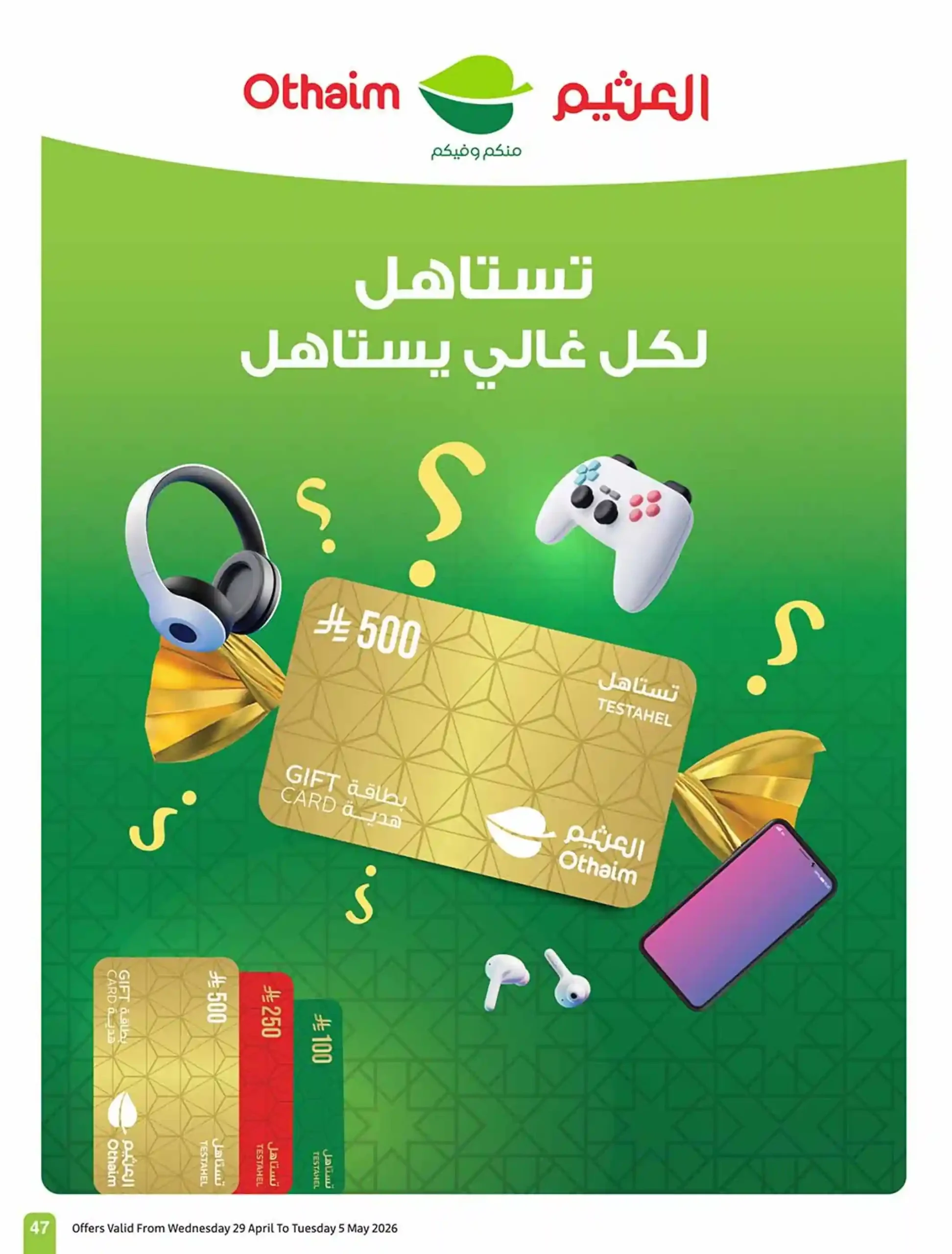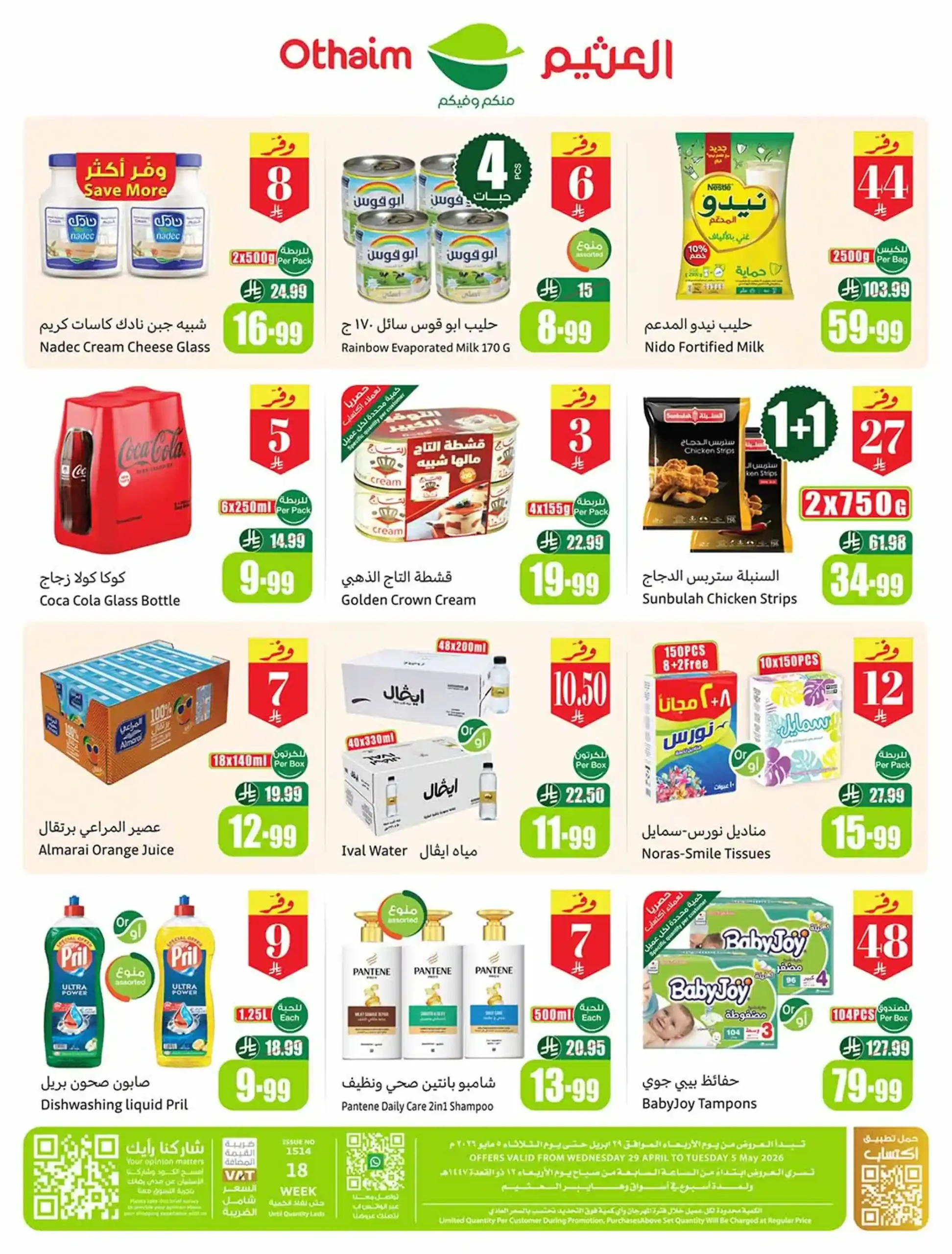 ودك توفّر؟ ترى بالربطة أوفر تصفح البروشور والحق على أقوى العروض حمل تطبيق اكتساب للاطلاع على أحدث العروض ومعرفة رصيدك ومشاهدة فواتير مشترياتك العروض من 29 أبريل إلى 5 مايو وحتى نفاد الكمية فى العثيم الرياض و العثيم جدة و العثيم الشرقية و العثيم الجنوبية