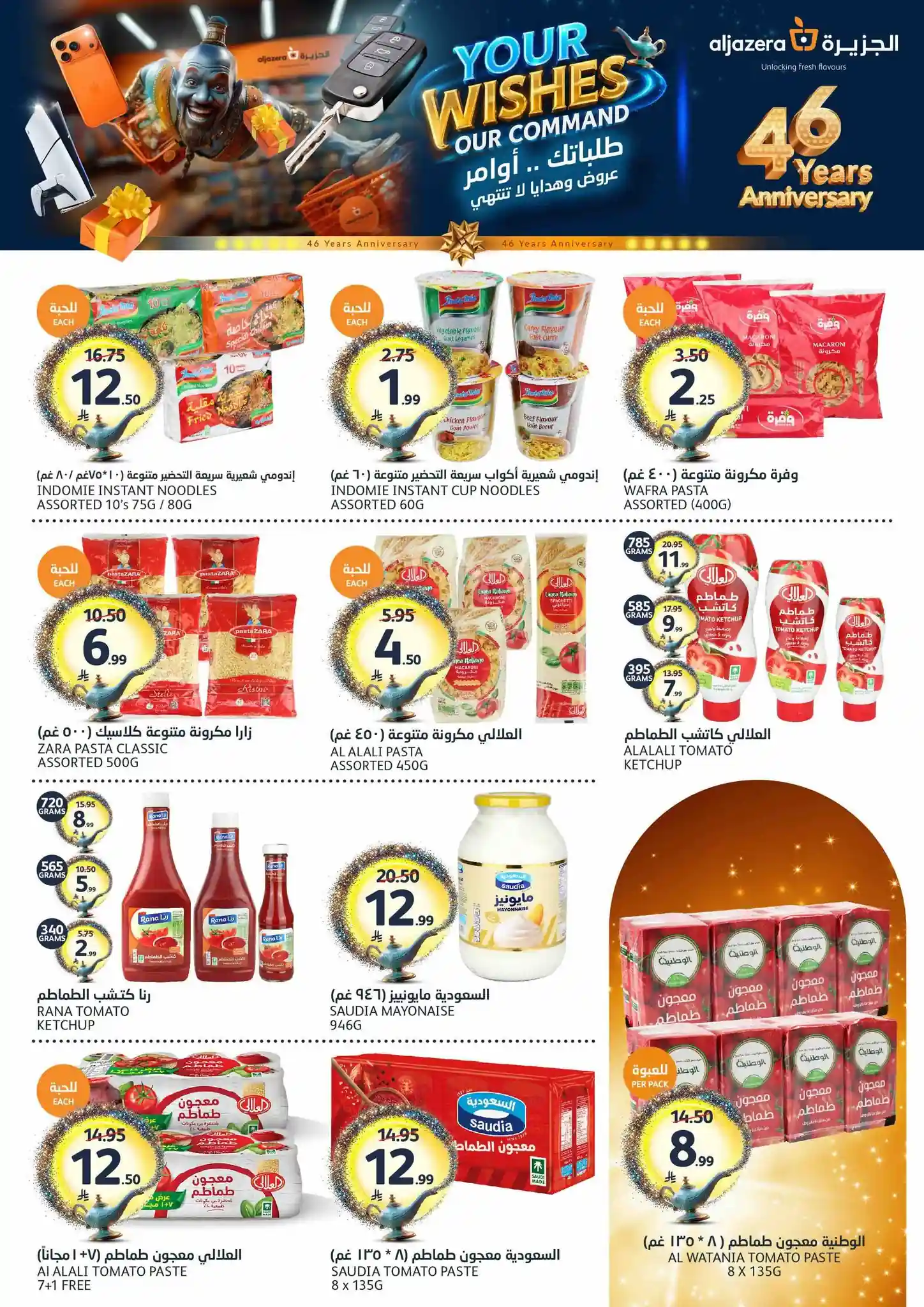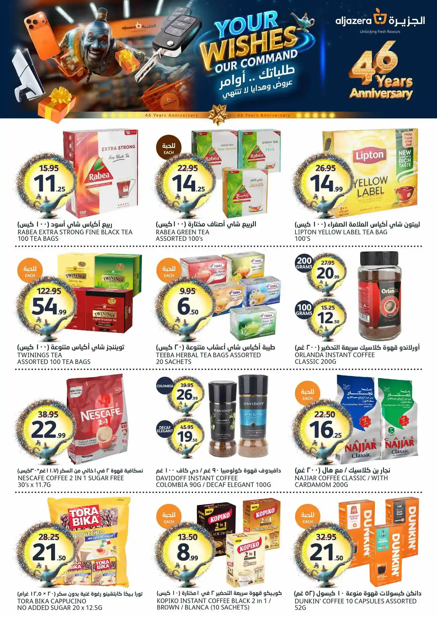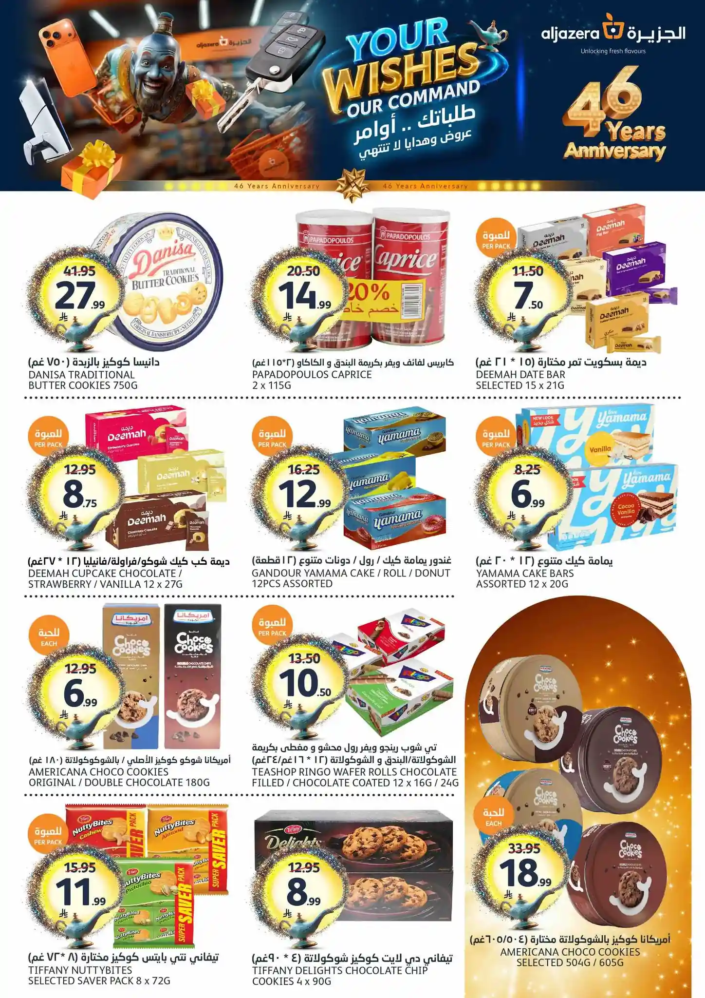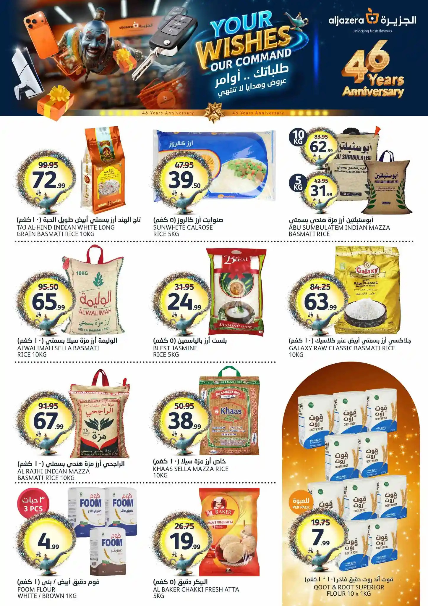 طلباتك أوامر… وعروضنا ما تنتهي! ✨ احتفلوا معنا بالذكرى السنوية الـ46 لأسواق الجزيرة بعروض يومية مميزة، خصومات مذهلة، هدايا قيّمة، ومفاجآت تستاهل الزيارة ???????? العروض مستمرة من 29 أبريل إلى 5 مايو 2026 أو حتى نفاد الكمية زوروا أقرب فرع الآن ????????