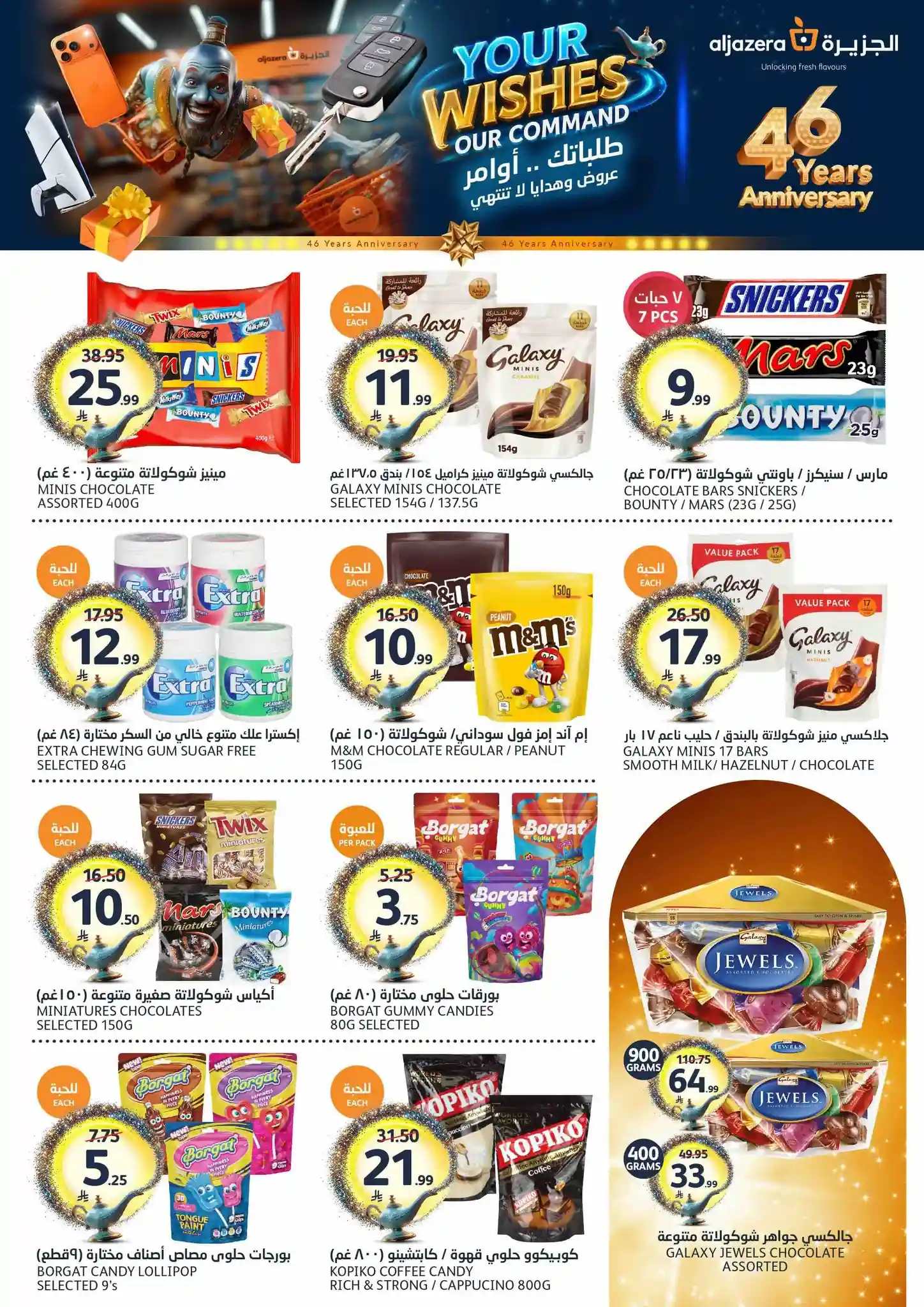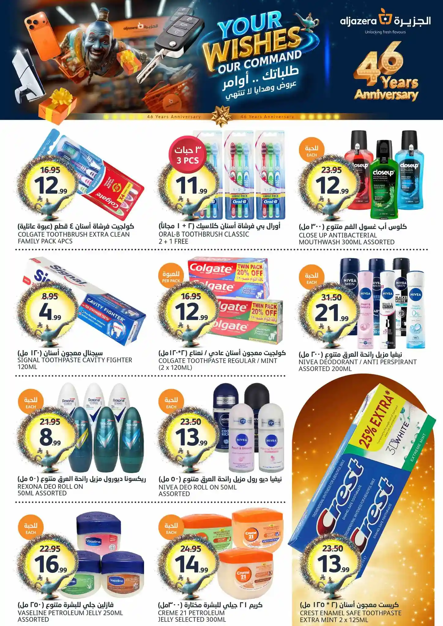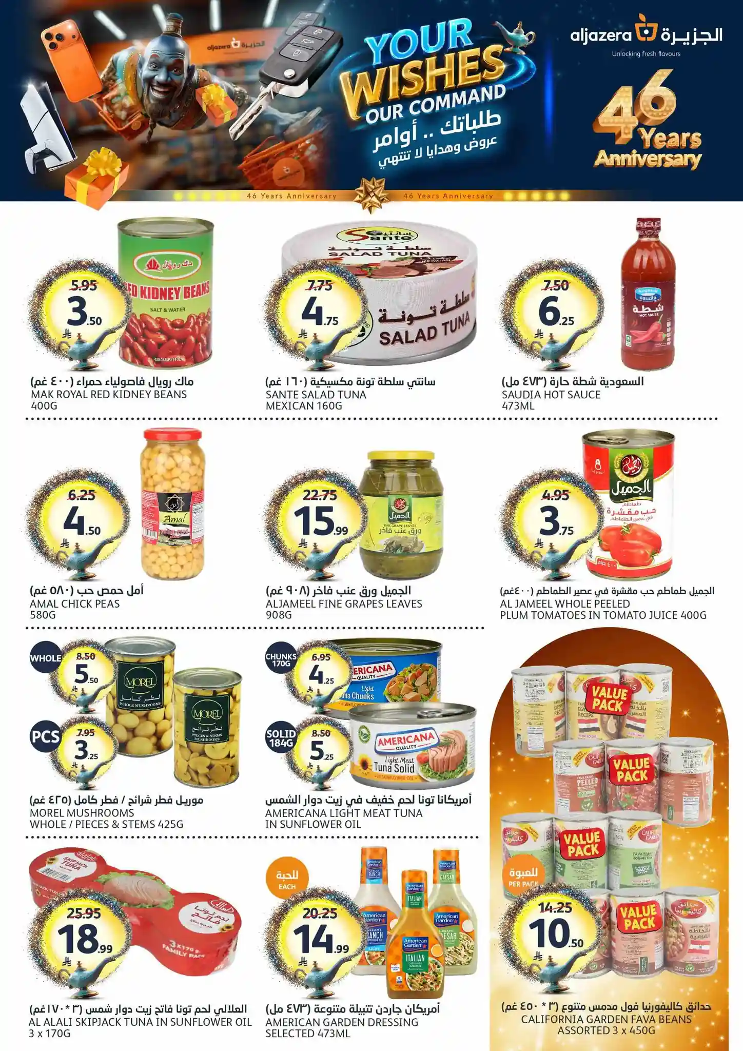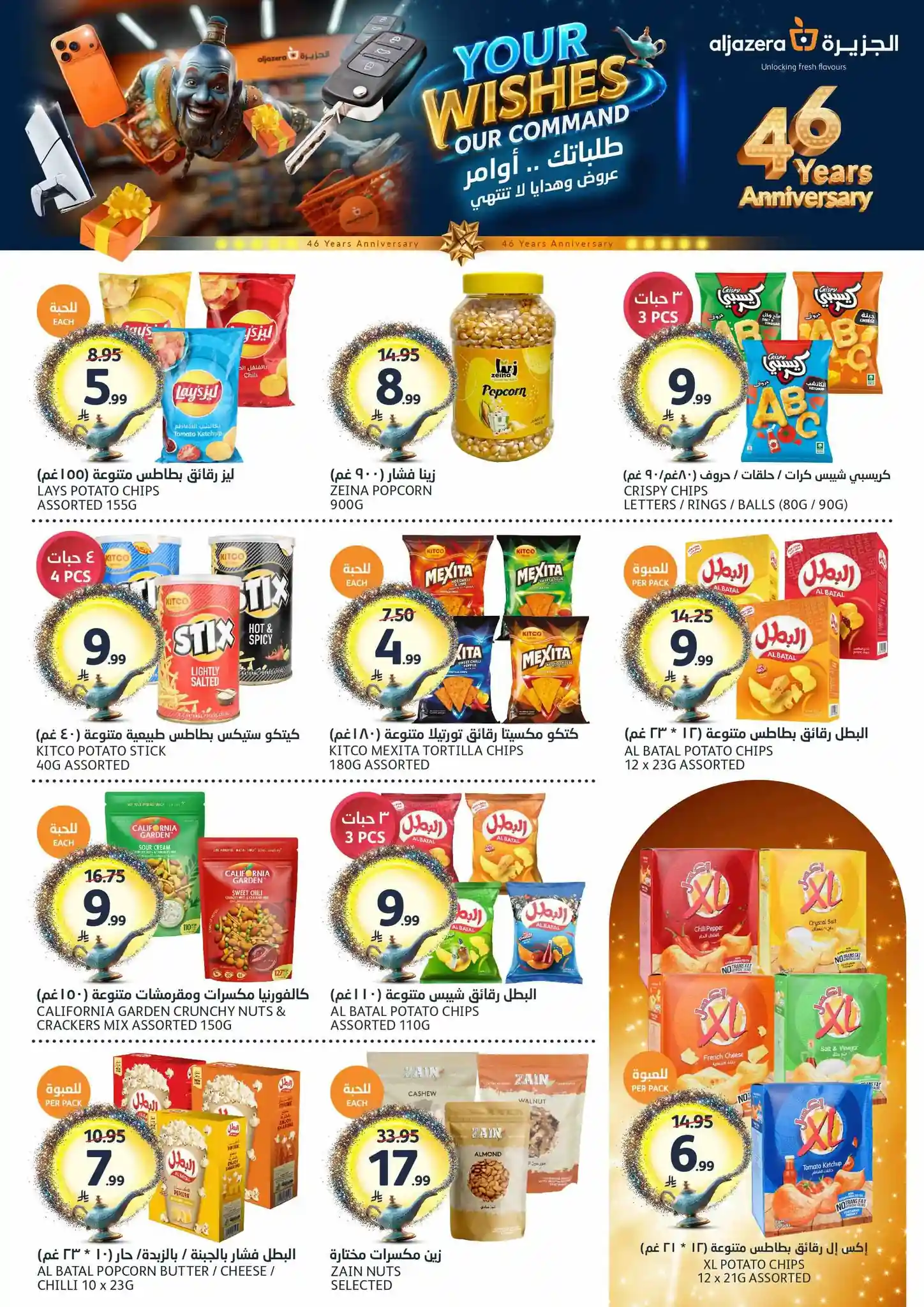 طلباتك أوامر… وعروضنا ما تنتهي! ✨ احتفلوا معنا بالذكرى السنوية الـ46 لأسواق الجزيرة بعروض يومية مميزة، خصومات مذهلة، هدايا قيّمة، ومفاجآت تستاهل الزيارة ???????? العروض مستمرة من 29 أبريل إلى 5 مايو 2026 أو حتى نفاد الكمية زوروا أقرب فرع الآن ????????