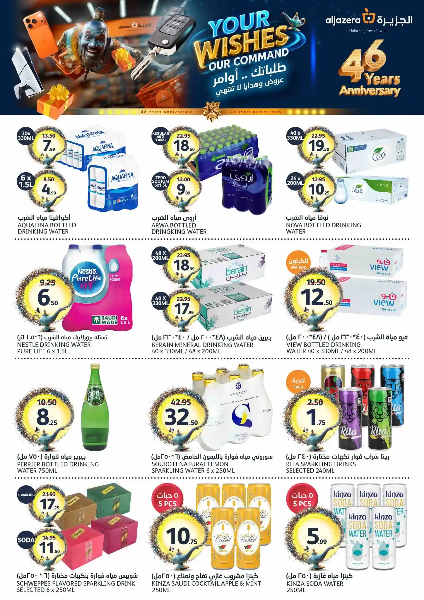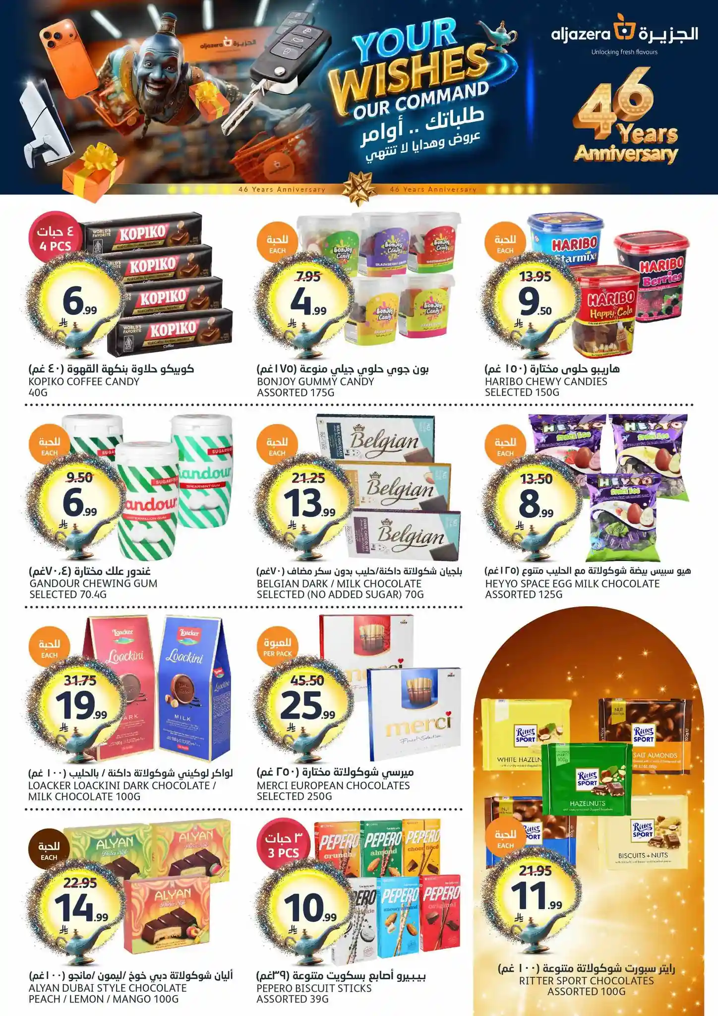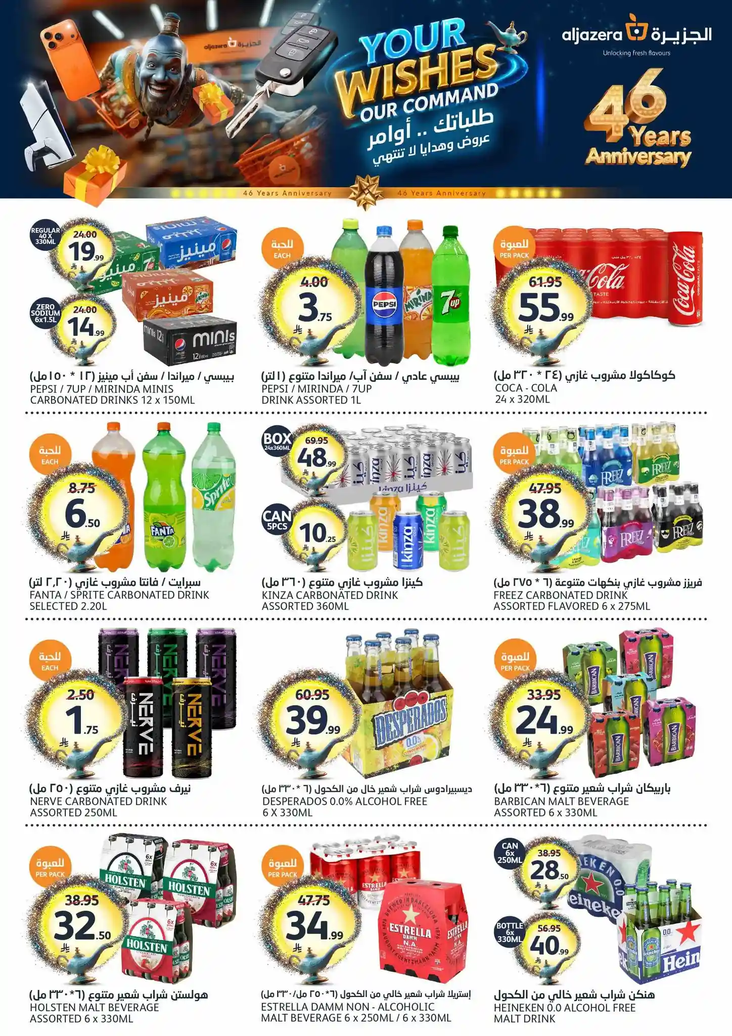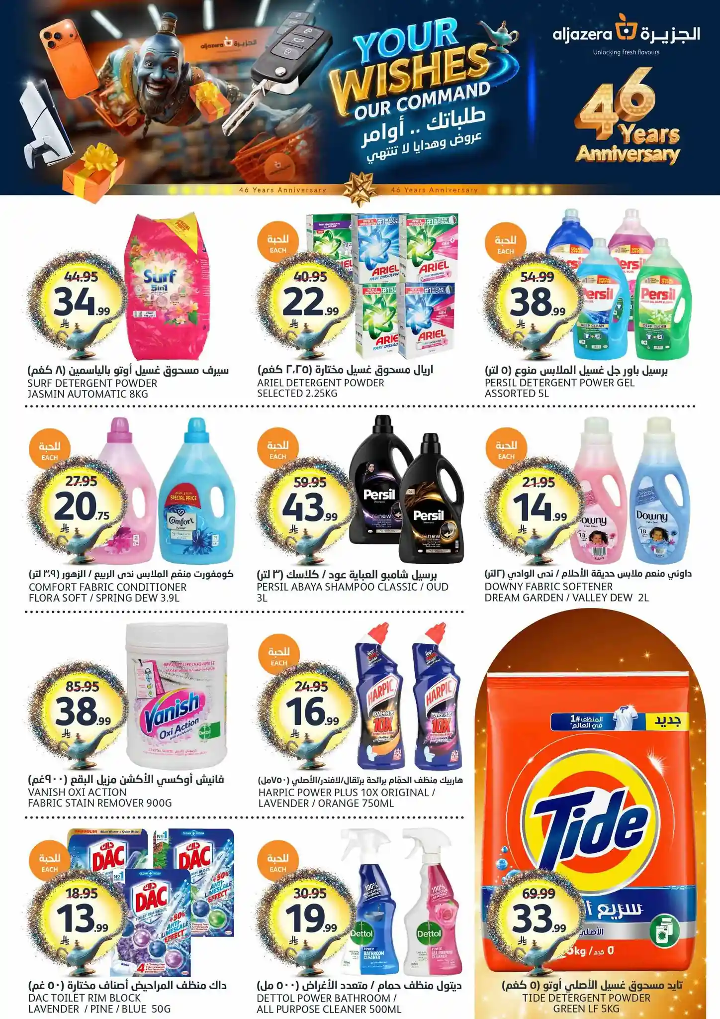 طلباتك أوامر… وعروضنا ما تنتهي! ✨ احتفلوا معنا بالذكرى السنوية الـ46 لأسواق الجزيرة بعروض يومية مميزة، خصومات مذهلة، هدايا قيّمة، ومفاجآت تستاهل الزيارة ???????? العروض مستمرة من 29 أبريل إلى 5 مايو 2026 أو حتى نفاد الكمية زوروا أقرب فرع الآن ????????