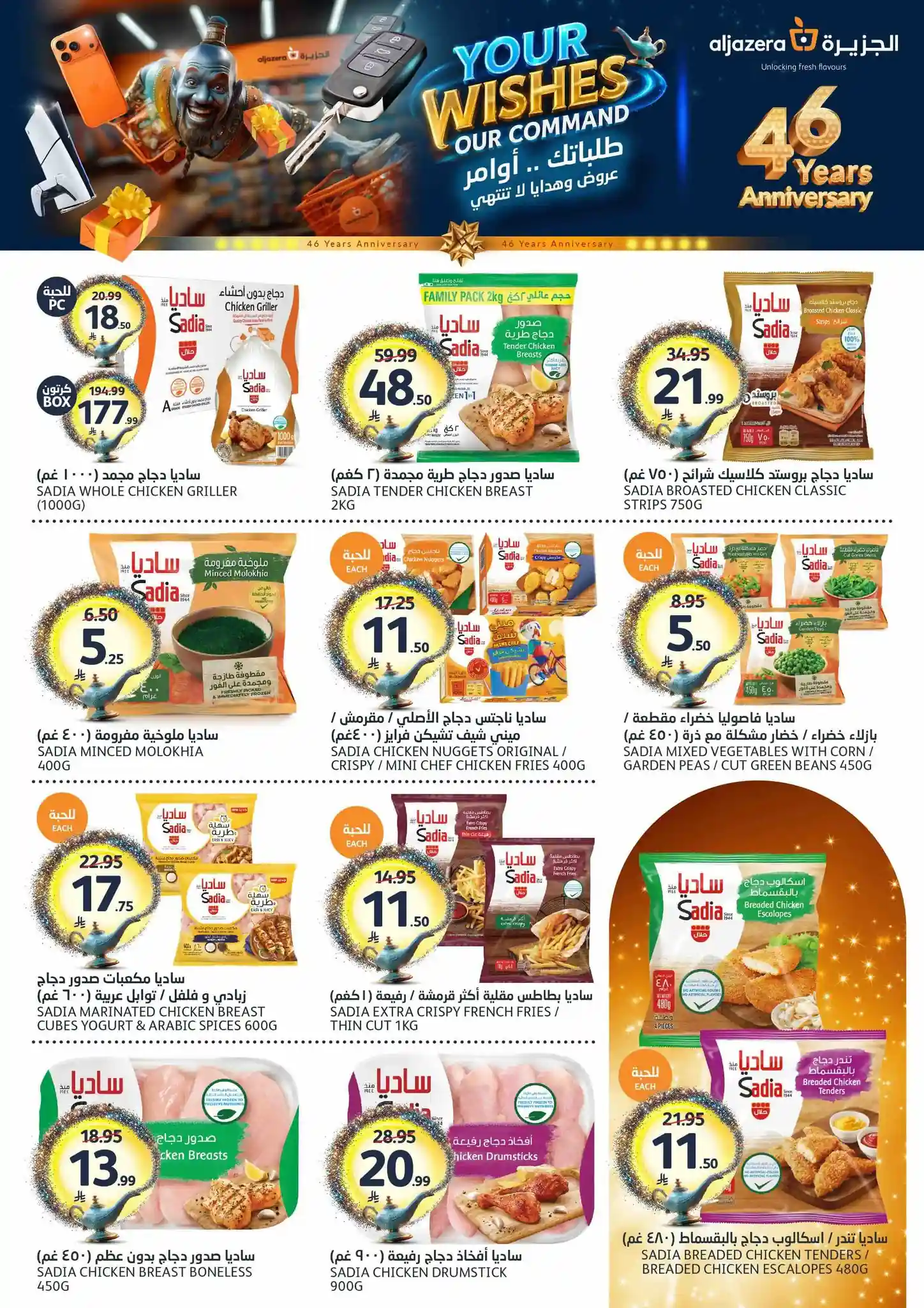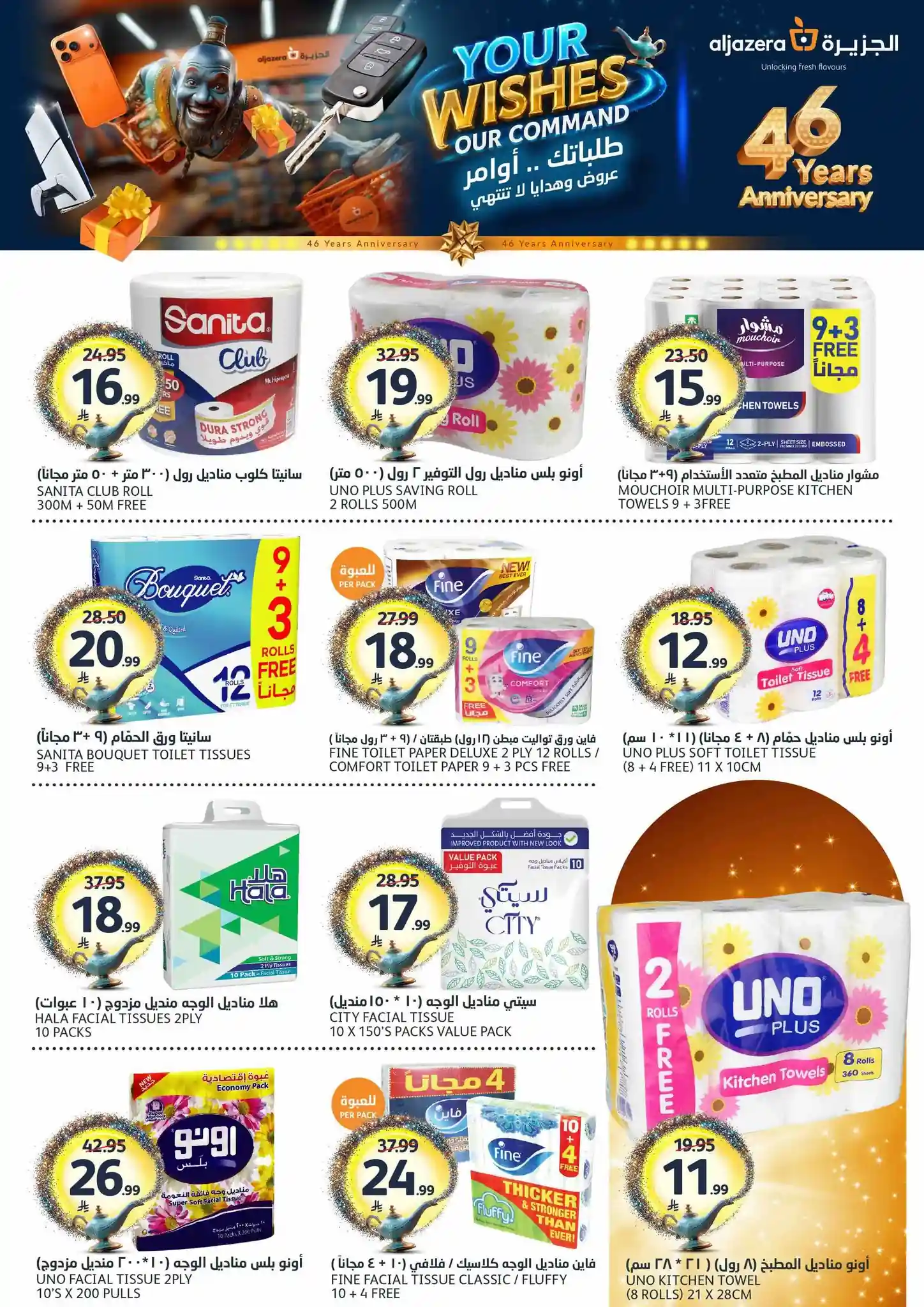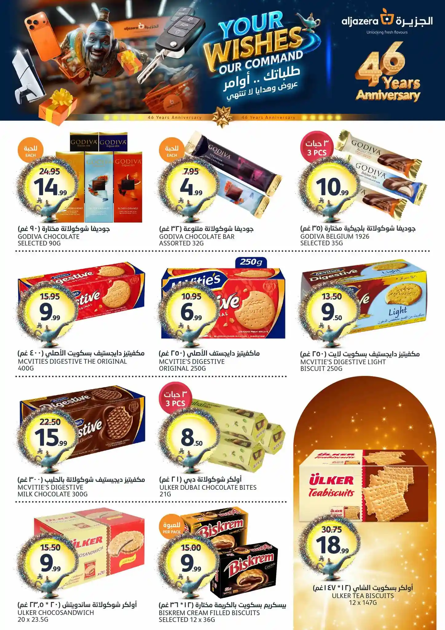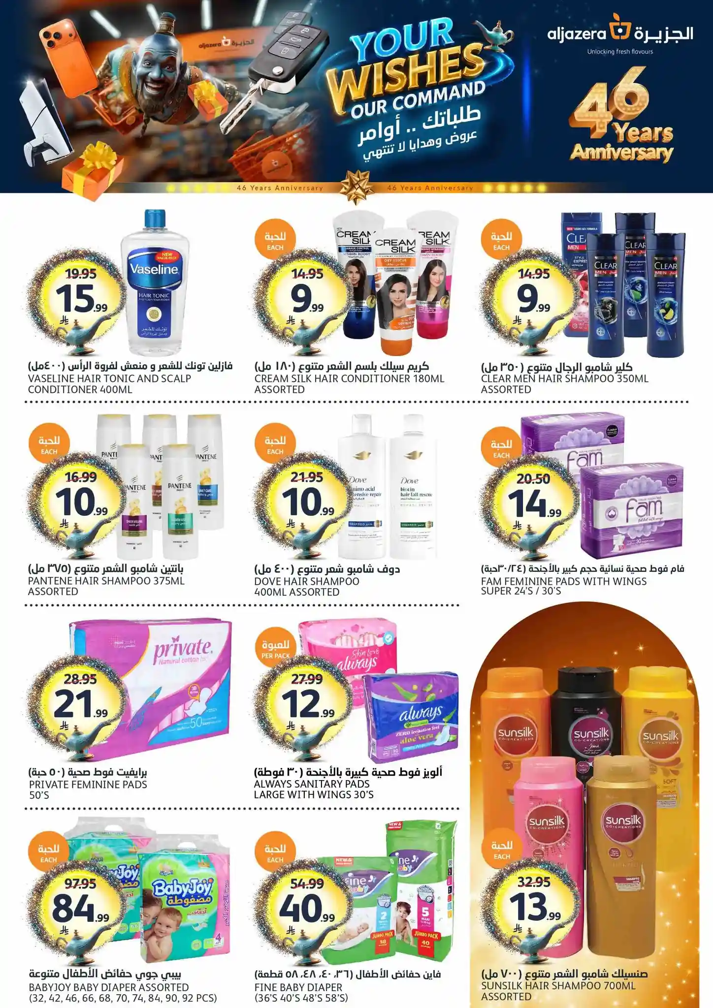 طلباتك أوامر… وعروضنا ما تنتهي! ✨ احتفلوا معنا بالذكرى السنوية الـ46 لأسواق الجزيرة بعروض يومية مميزة، خصومات مذهلة، هدايا قيّمة، ومفاجآت تستاهل الزيارة ???????? العروض مستمرة من 29 أبريل إلى 5 مايو 2026 أو حتى نفاد الكمية زوروا أقرب فرع الآن ????????