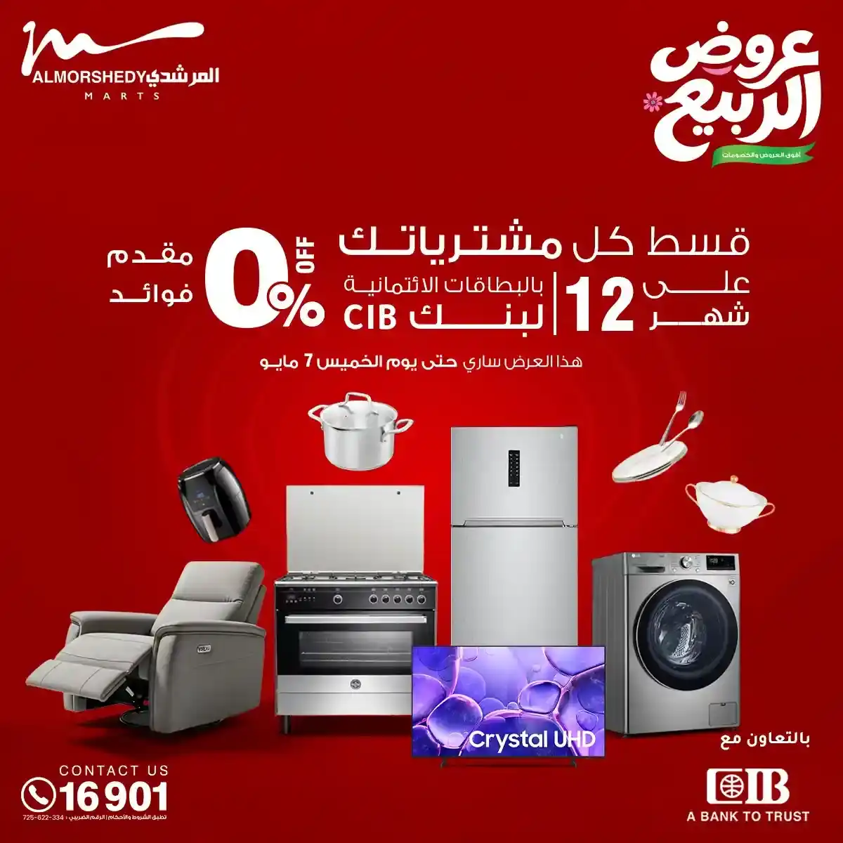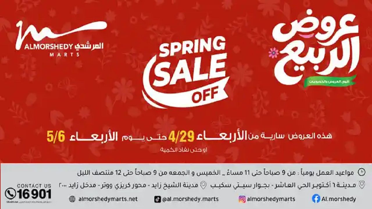 تسرى عروض المرشدى من 29 ابريل حتى 6 مايو 2026 فى جميع الفروع على الادوات المنزلية والاجهزة الكهربائية