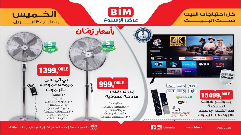 الوقت المناسب تغيّر وتجهّز بيتك! ???? من الخميس 30 ابريل 2026 وحتى نفاذ الكمية ???? عروض بيم على الأجهزة الكهربائية والأدوات المنزلية ???? العرض مش هيستنى… إنت كمان متستناش!