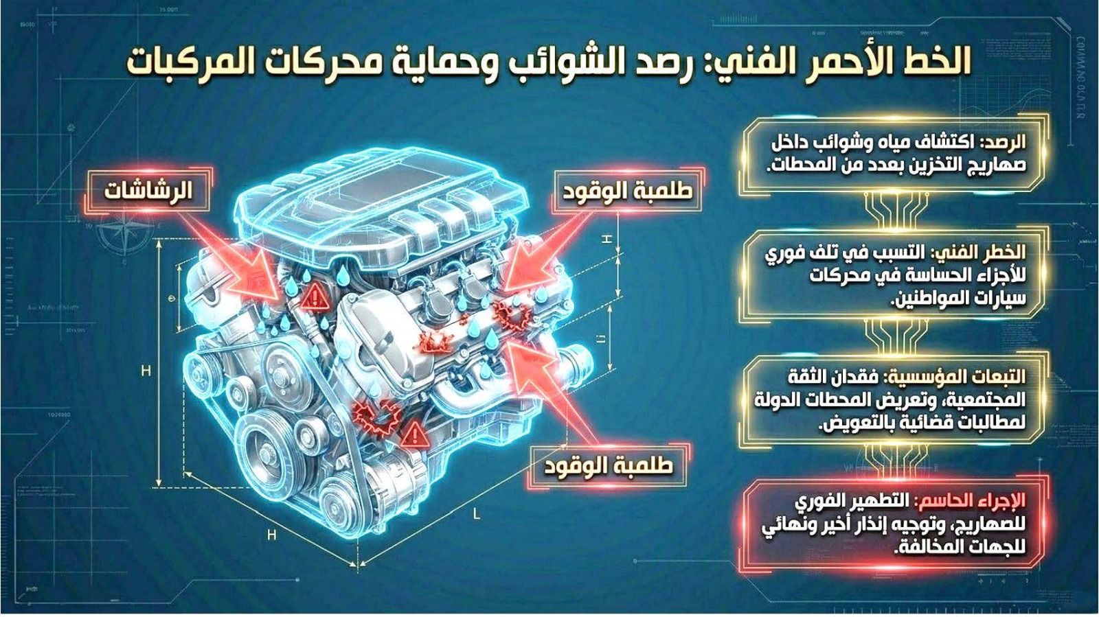 رصد مخالفات فنية خطيرةوأشار التقرير إلى رصد مخالفات فنية خطيرة، تمثلت في وجود شوائب ومياه داخل صهاريج بعض المحطات، بما قد يؤدي إلى تلف أجزاء المحرك ويعرّض المحطات لمساءلات قانونية، حيث تم إيقاف المسدسات المخالفة فورًا وإحالتها إلى هيئة الدمغ والموازين لإعادة المعايرة. كما تم فحص شكوى متداولة عبر مواقع التواصل الاجتماعي بشأن إحدى المحطات بمحافظة المنوفية، وثبوت وجود تلاعب بها.