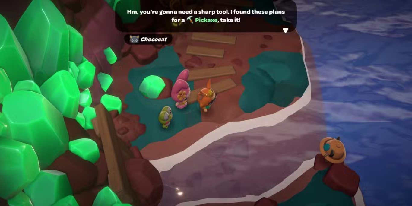 في نهاية هذا الجزء من المهمة، ستمنحك My Melody وصفة Pickaxe، والتي تُعد أداة أساسية لمتابعة التقدم، إذ ستحتاج إليها لاحقًا لتكسير الصخور واستخراج العناصر وإزالة العوائق داخل المناطق المختلفة في Hello Kitty Island Adventure.