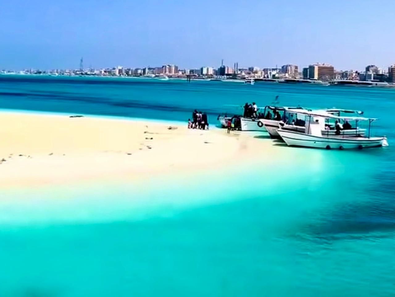 قوارب نقل المصطافين بين شاطئ الغرام ومدينة مرسى مطروح