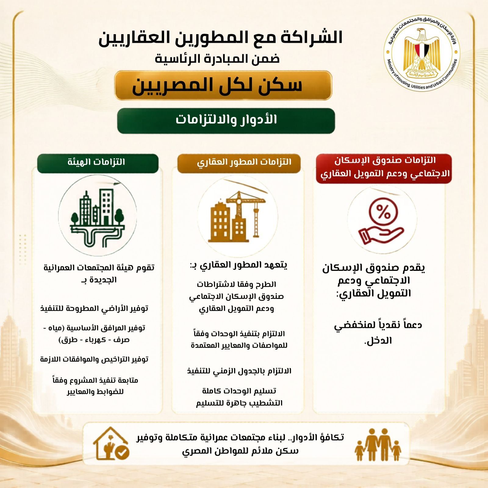 الهدف من المبادرة، توفير السكن الملائم للمواطنين منخفضي الدخل، وضمان استدامة توفير السكن الملائم للمواطنين منخفضي الدخل، كما يهدف إلى دعم وتطوير آليات القطاع الخاص في توفير الأنماط السكنية المختلفة بالسوق العقاري.