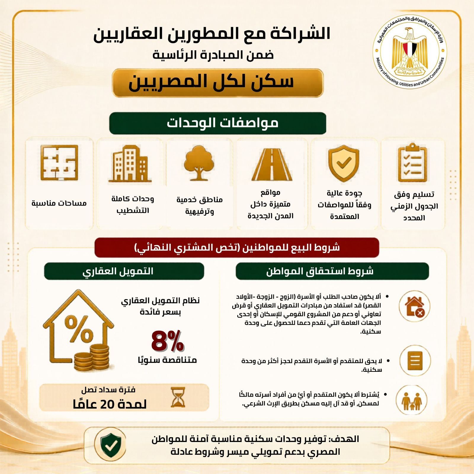 وكانت المهندسة راندة المنشاوي، وزيرة الإسكان، قد اكدت أنه يلتزم المطور ببيع الوحدات السكنية بنظام التمويل العقاري، وفقًا للشروط والضوابط المعتمدة في هذا الشأن، وبعد موافقة جهة منح التمويل العقاري المتعاقد معها الصندوق، وبسعر عائد مخفض يبلغ 8% متناقصة طوال مدة التمويل، ولمدة تصل إلى 20 عامًا كحد أقصى.