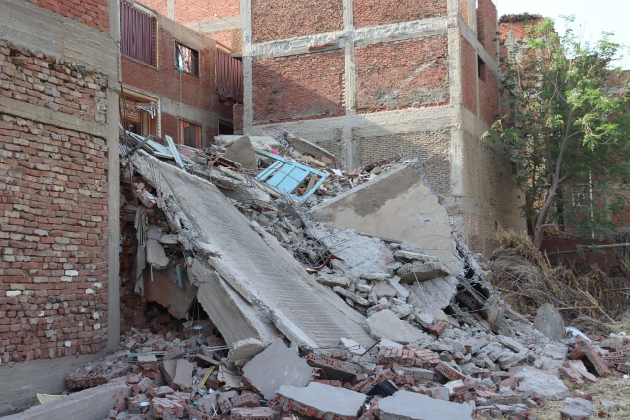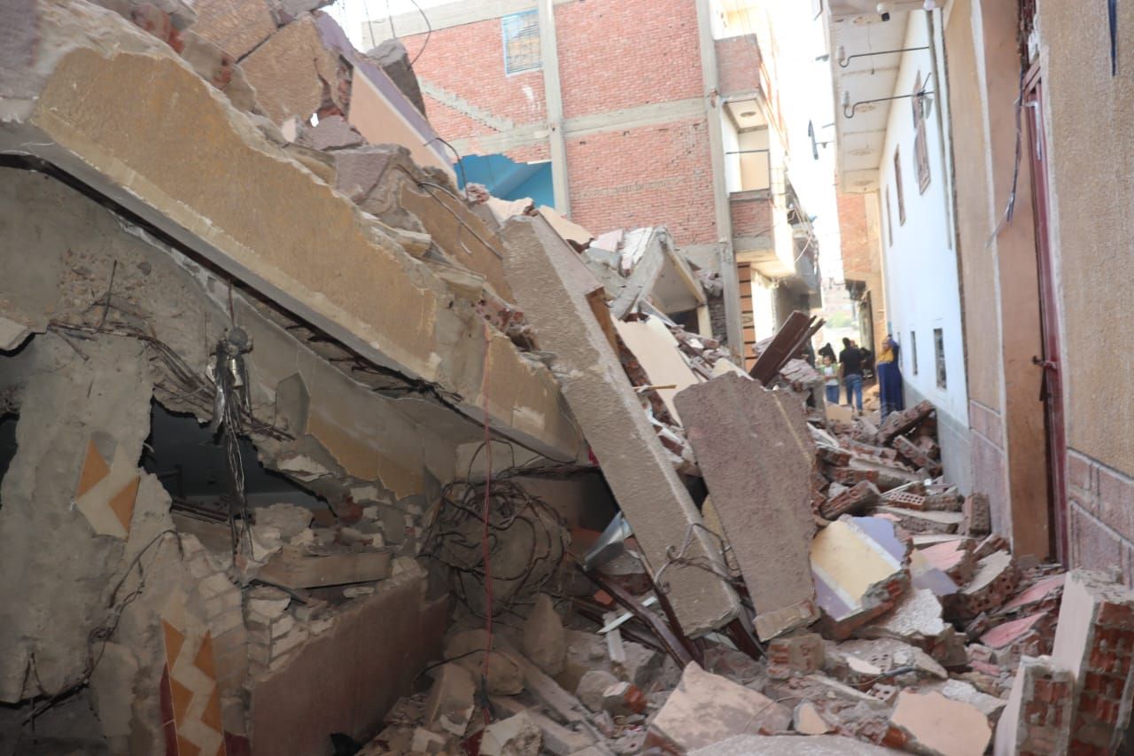 موقع انهيار منزل مكوّن من 5 طوابق بقرية كفر الحمام