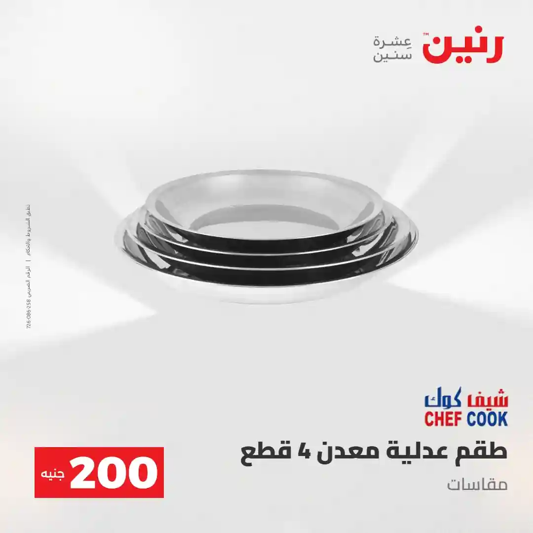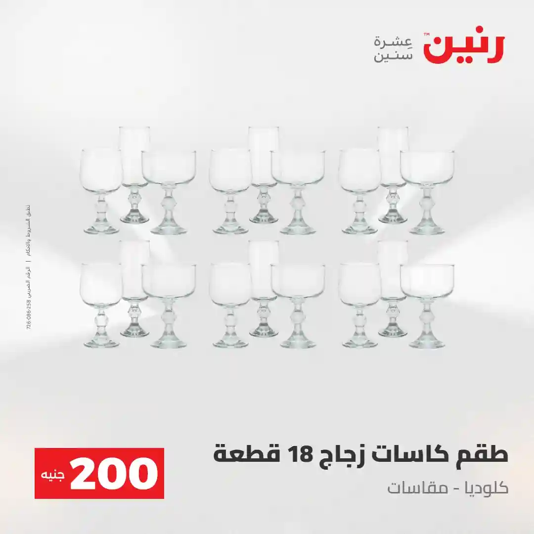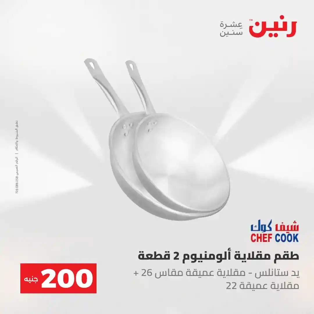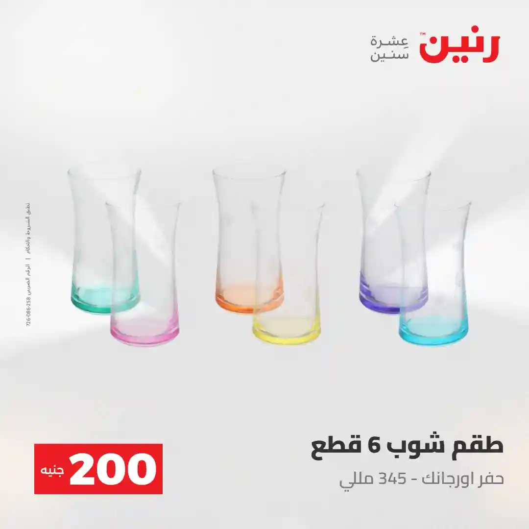 عرض الـ 200 جنيه .. لكل رفايع البيت اللي محتاجاها ???? العرض متوفر يوم الأحد والاثنين 3 و 4 مايو 2026 في جميع فروع رنين ????قسط مشترياتك ( 0% مقدم – 0% فوائد – 0% مصاريف إدارية ) للتواصل : 16113