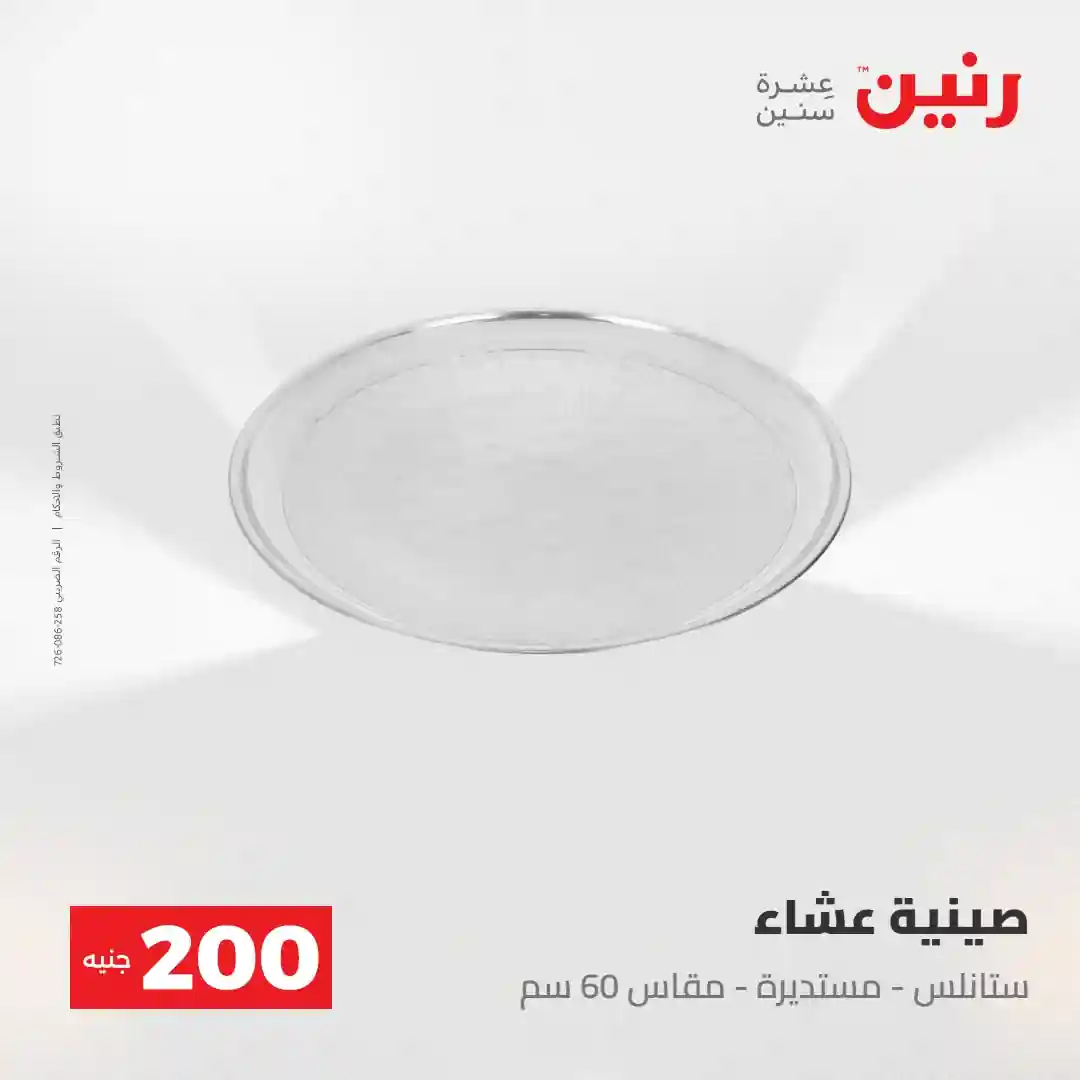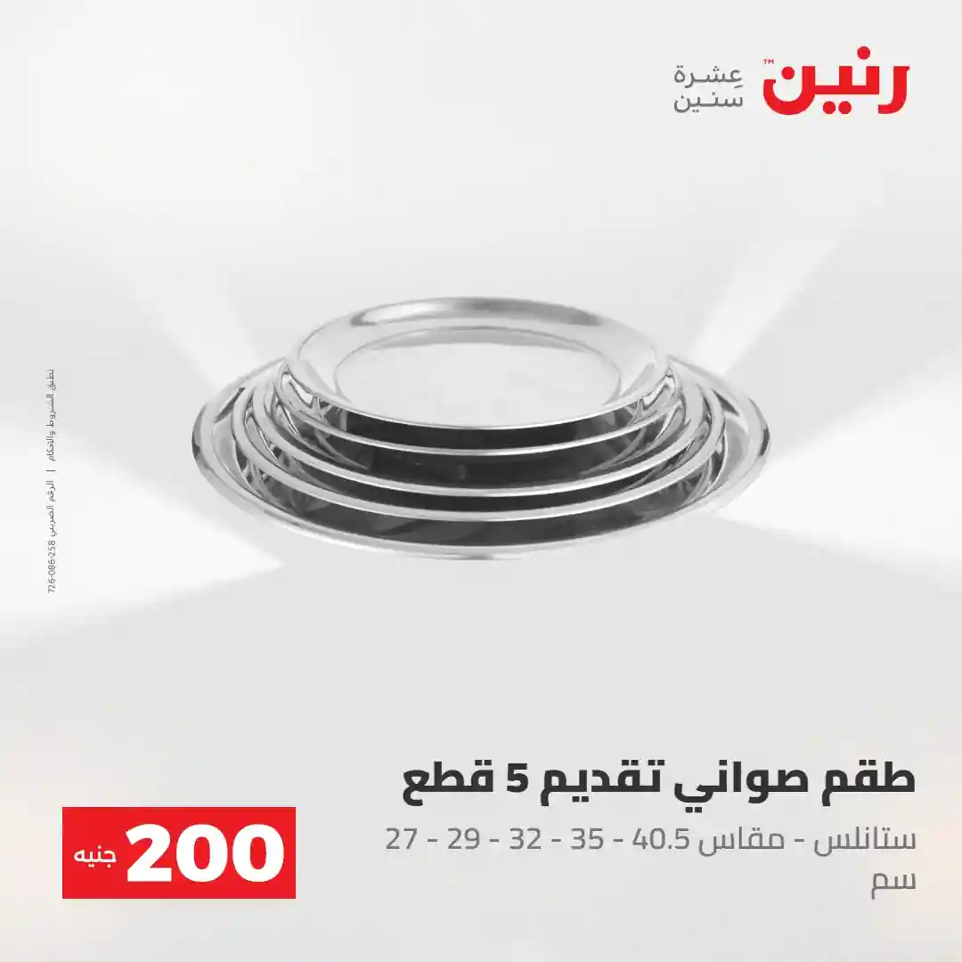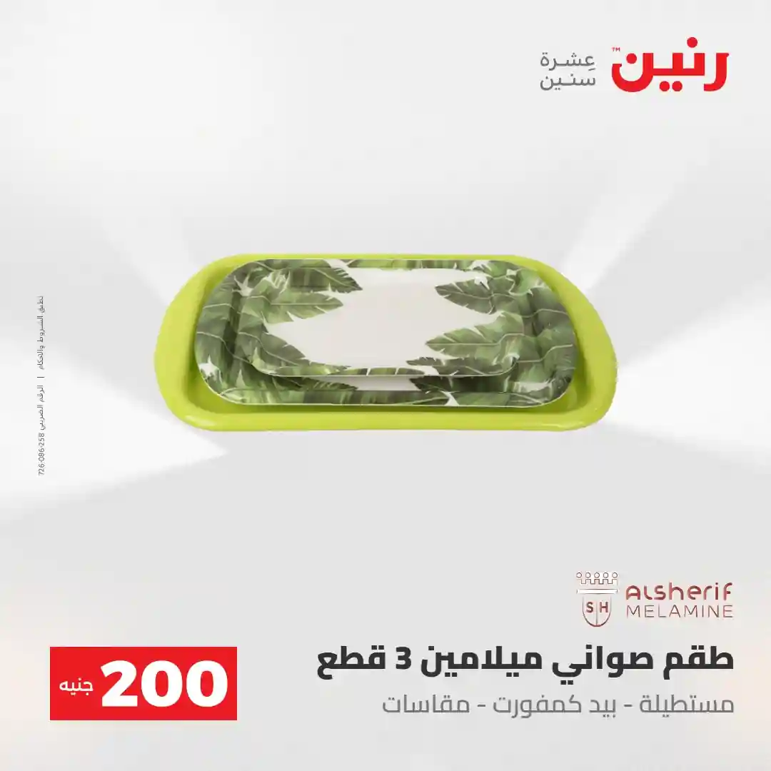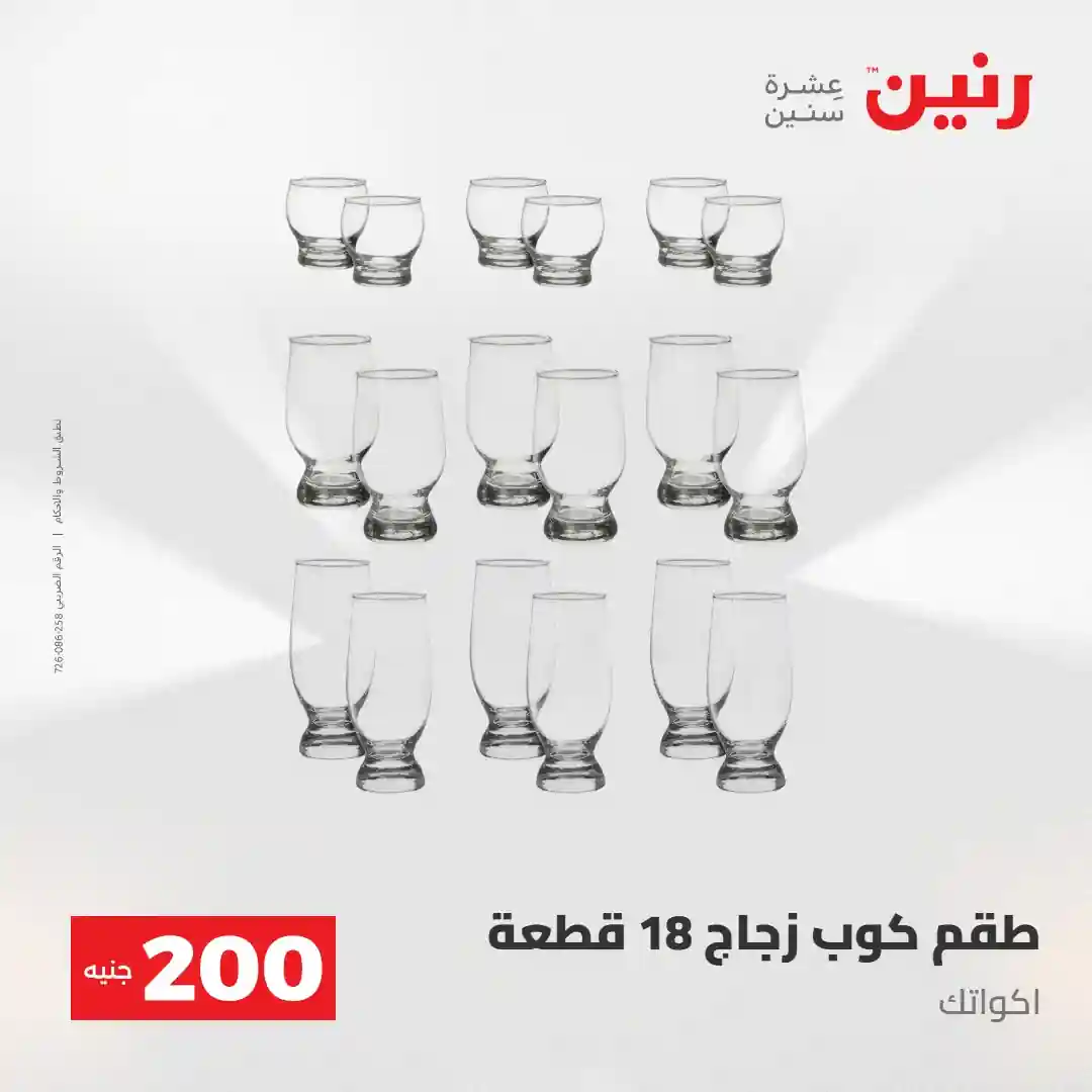 عرض الـ 200 جنيه .. لكل رفايع البيت اللي محتاجاها ???? العرض متوفر يوم الأحد والاثنين 3 و 4 مايو 2026 في جميع فروع رنين ????قسط مشترياتك ( 0% مقدم – 0% فوائد – 0% مصاريف إدارية ) للتواصل : 16113