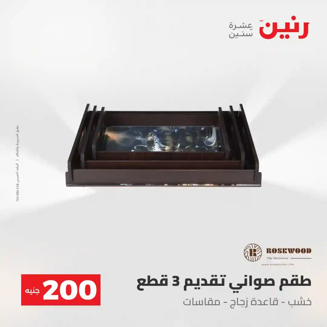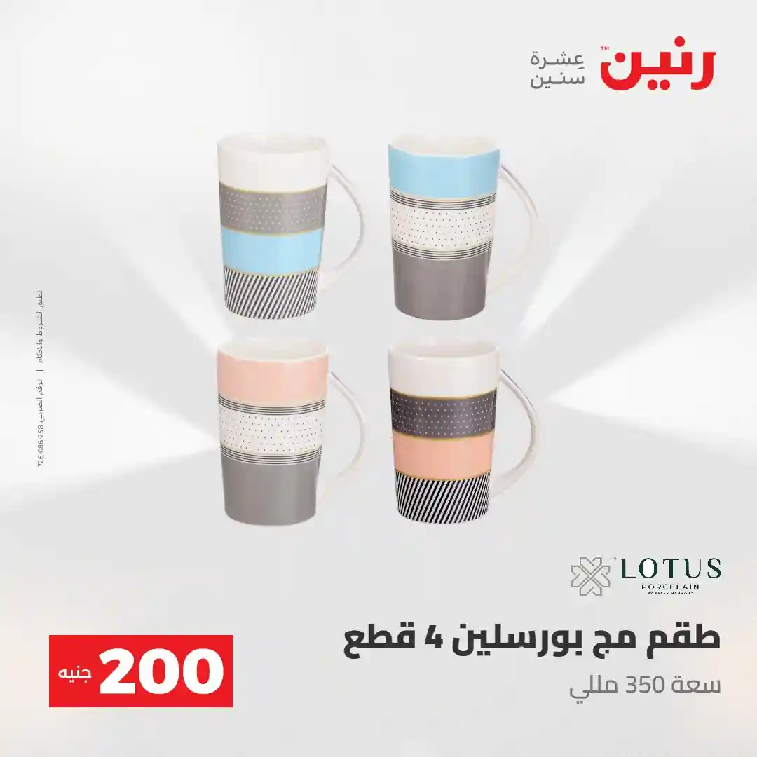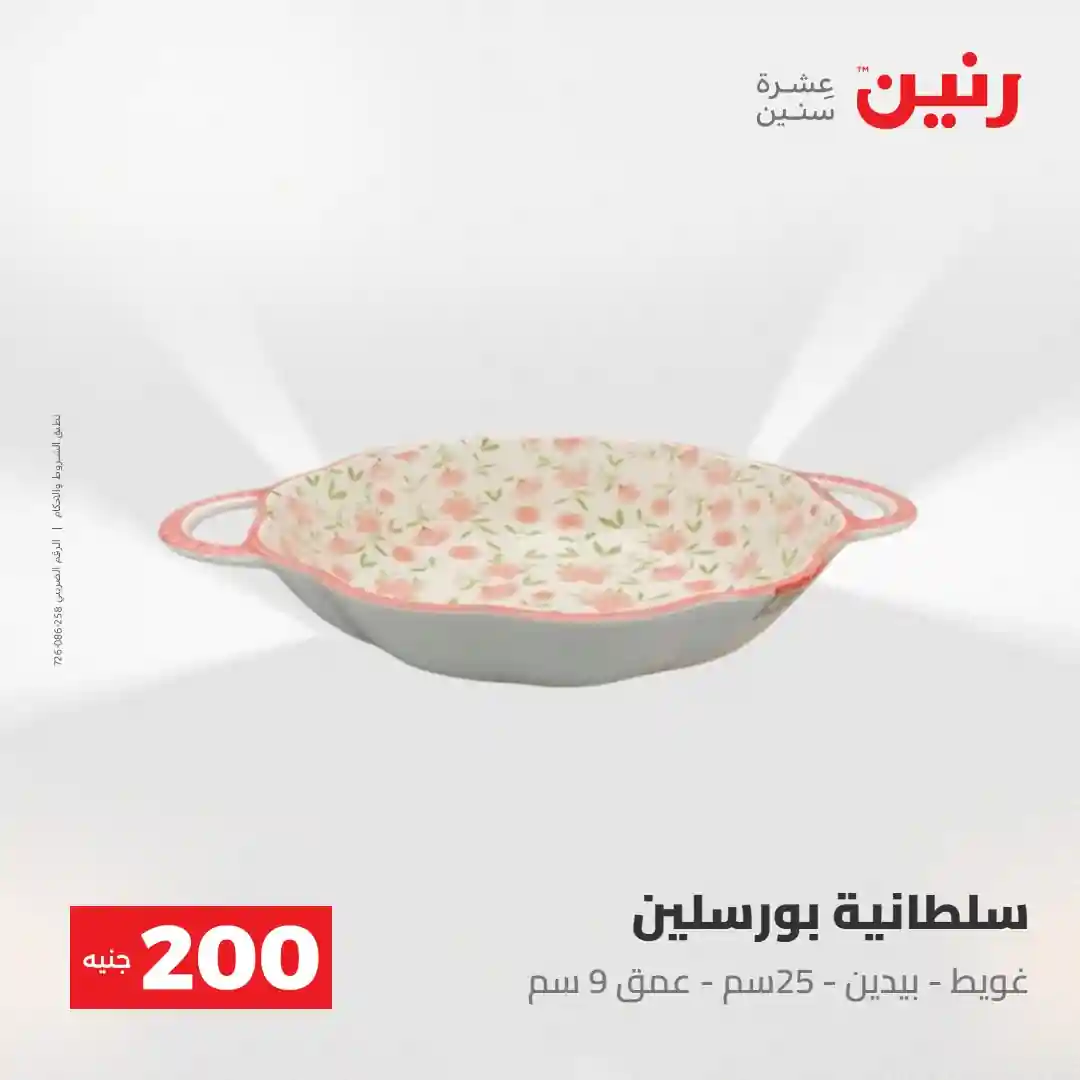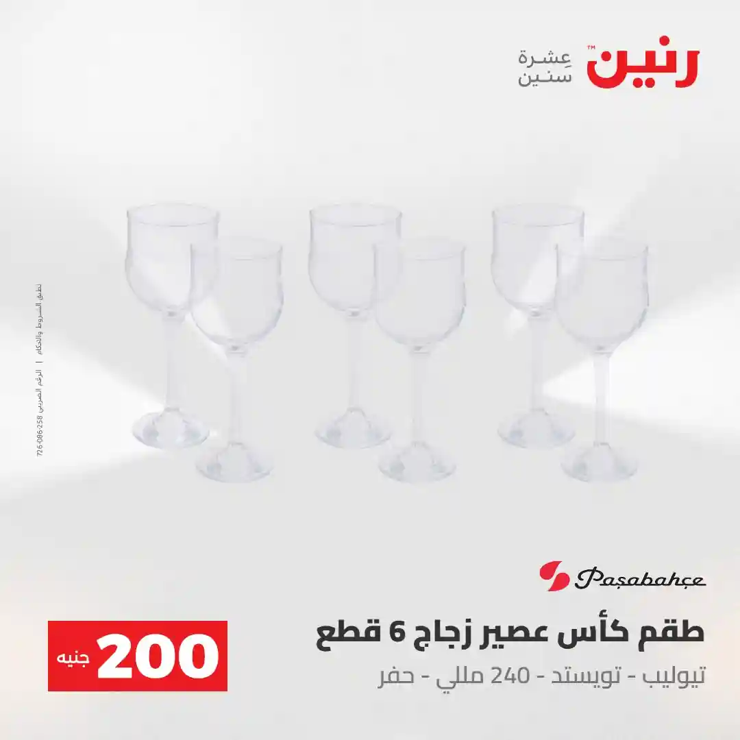 عرض الـ 200 جنيه .. لكل رفايع البيت اللي محتاجاها ???? العرض متوفر يوم الأحد والاثنين 3 و 4 مايو 2026 في جميع فروع رنين ????قسط مشترياتك ( 0% مقدم – 0% فوائد – 0% مصاريف إدارية ) للتواصل : 16113